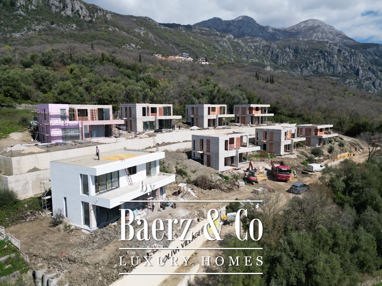 The project consists of 8 villas, and most of them are finished and sold.. This villa has 2 levels. It has a pool. The villa has 2 parking spots. It is connected by an asphalt road to the main road. The project will be finished in May of 2026.