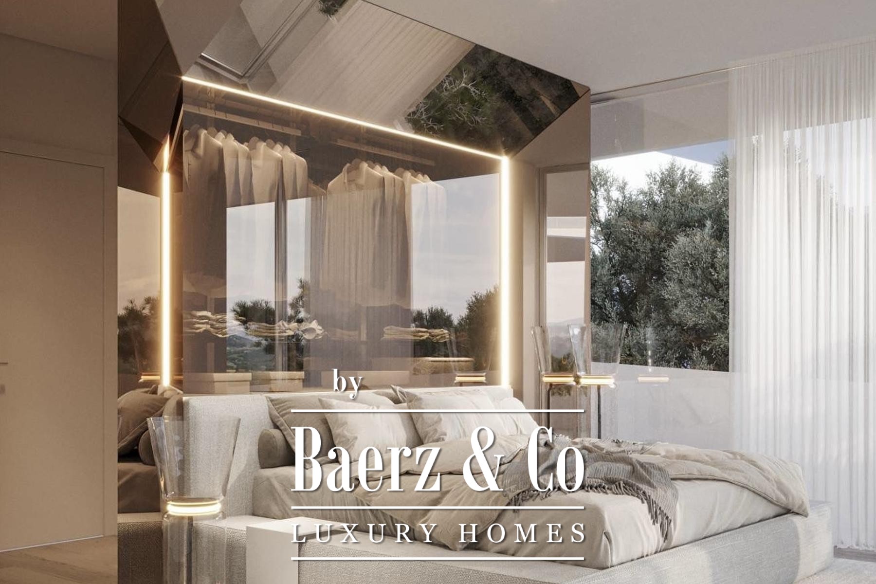 The home offers four bedrooms and four bathrooms, each finished with designer sanitary ware in brushed bronze and satin, ensuring a blend of comfort and composed elegance. The interior is designed for fluid living, while terraces of 197 m² and a 34 m² rooftop pool invite seamless connection between in and outdoor spaces. Features such as a sculptural Ergofocus fireplace, Schüco systems, and top-quality ceramics emphasize refined detail, with a 32 m² garage complementing the layout.