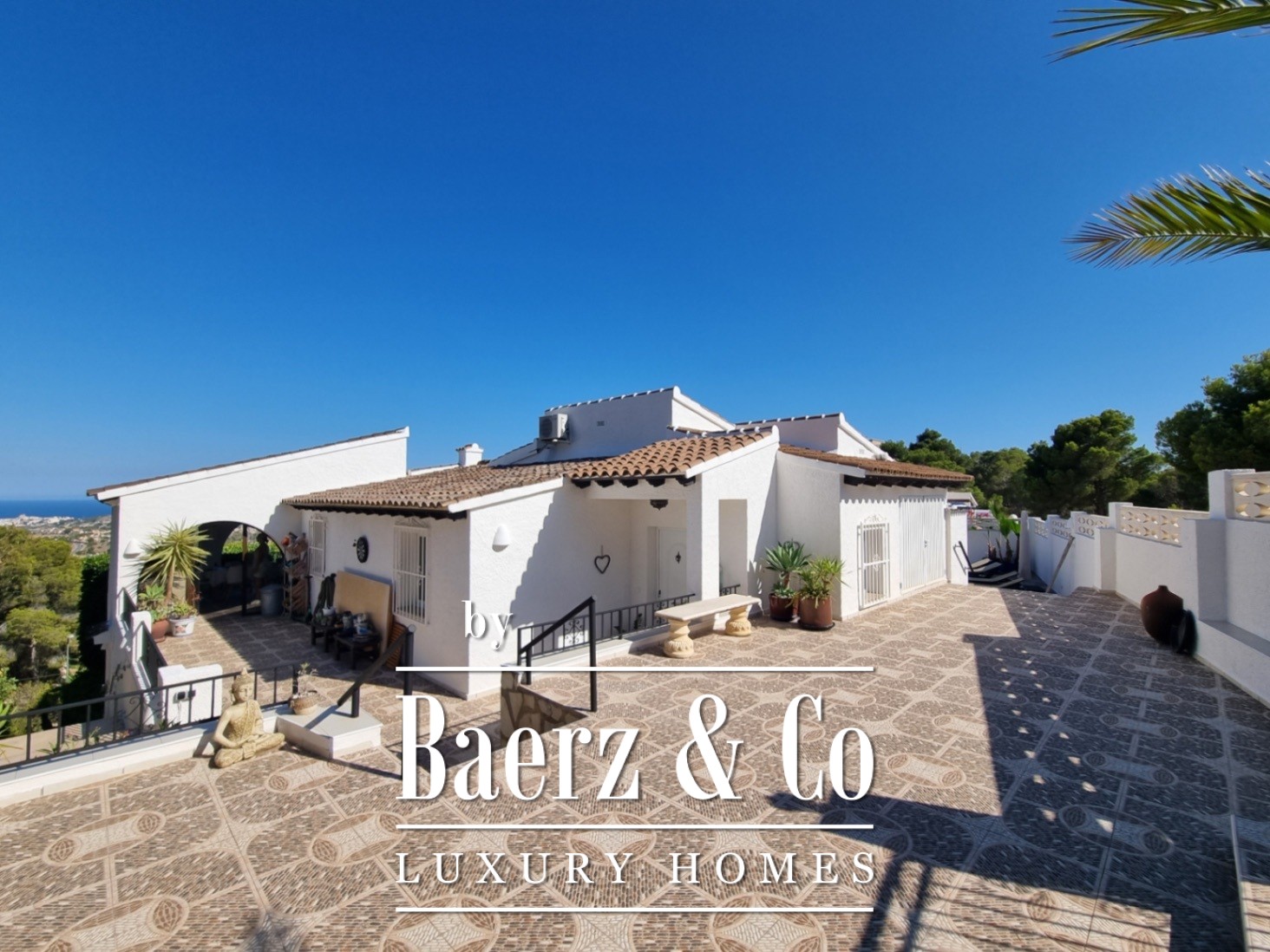 Outside, an array of palm and fruit trees create a sense of quiet seclusion. The private pool, dedicated parking, and refined garden spaces complete the sense of retreat. The outdoor kitchen enhances the Mediterranean atmosphere, making alfresco living effortless.