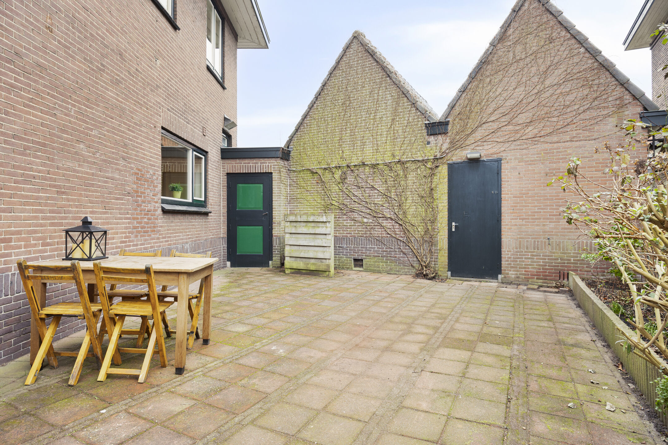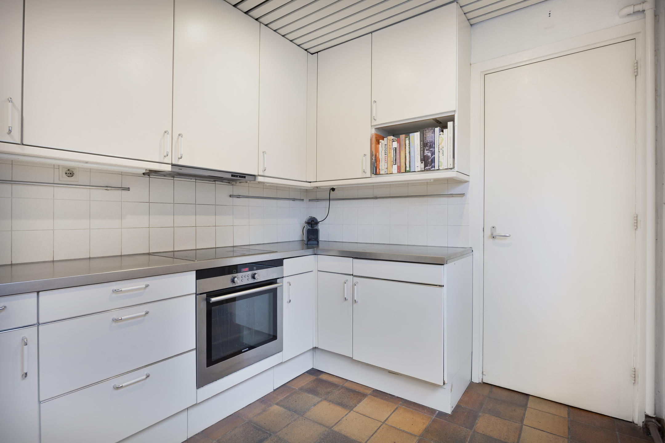 Aan de achterzijde van de woning ligt de keuken met alle ruimte voor de keukenopstelling en een grote eettafel. De deur naar de tuin staat bij mooi weer waarschijnlijk altijd open en zal voor een zoete inval van vrienden en familie zorgen. Aansluitend aan de keuken bevindt zich de bijkeuken met achterdeur naar de tuin. Wasmachine, droger, extra koel-vriescombinatie, wijnklimaatkast: er is ruimte genoeg!