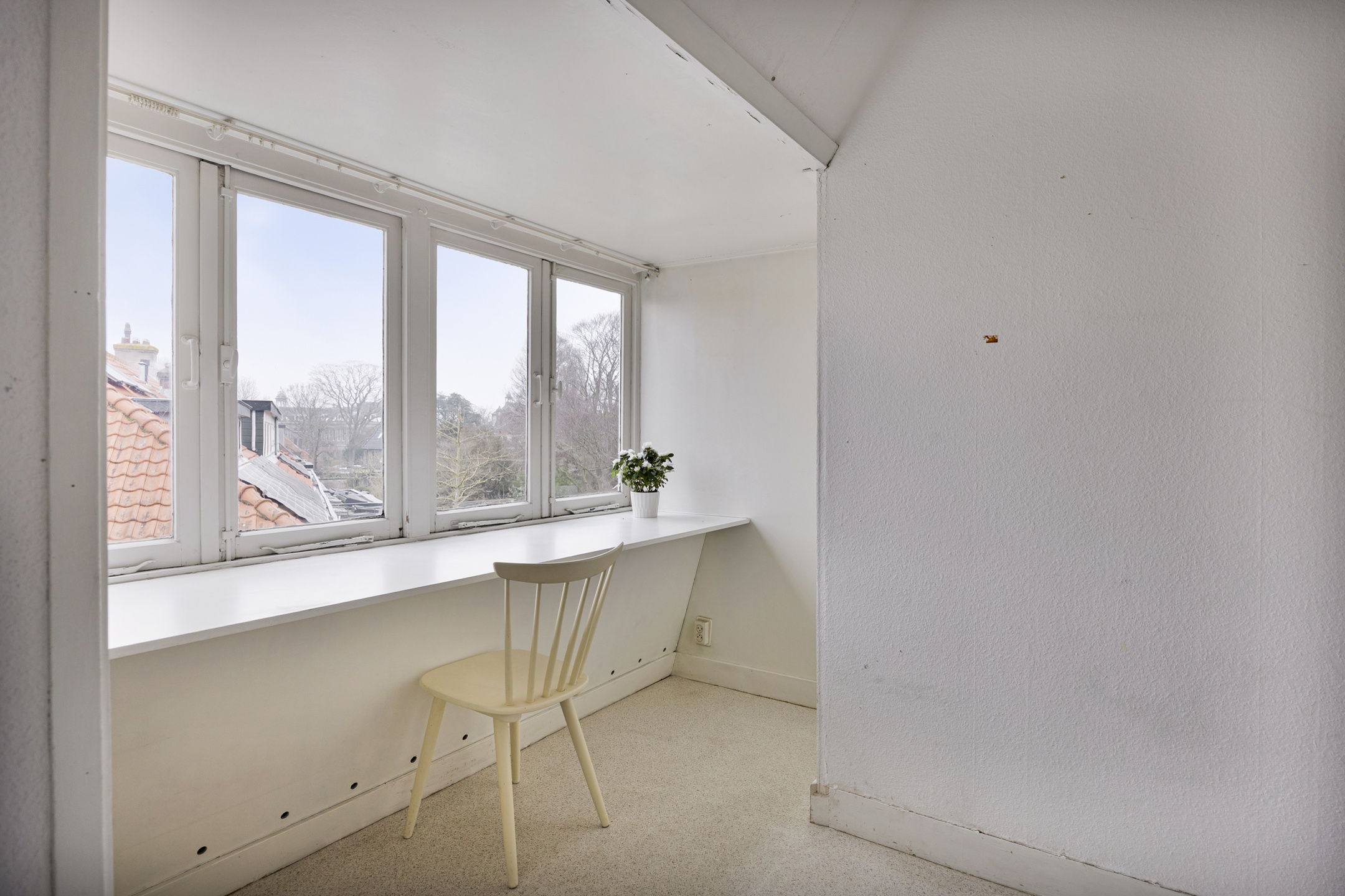 De centrale overloop biedt toegang tot alle kamers. Daarbij bevinden zich aan de voorzijde twee slaapkamers, waarvan één met openslaande deuren naar het ruime dakterras en weids uitzicht over de voortuin en Fruinlaan. Aan de achterzijde bevinden zich ook twee slaapkamers, waarvan één in gebruik is als de ouderslaapkamer met een direct verbinding naar de badkamer. Op de overloop bevindt zich nog een aparte wc met fonteintje. Trouwens, alle slaapkamers beschikken over een eigen wastafel met marmeren achterblad.