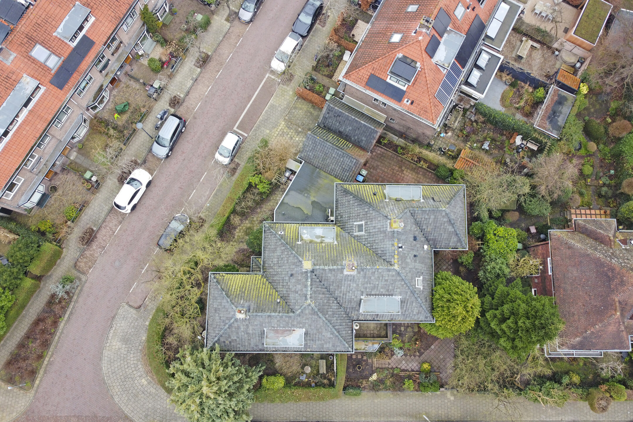 De woning ligt op een ruim perceel met aan drie zijden tuin, waarmee de mogelijkheid wordt geboden om op elk moment van de dag te genieten van de zon of juist de schaduw. De openslaande deuren vanuit de woonkamer, de deur vanuit de keuken, de achterdeur van de bijkeuken en de deur vanuit de garage verbinden huis en tuin vanuit alle vertrekken op de begane grond.