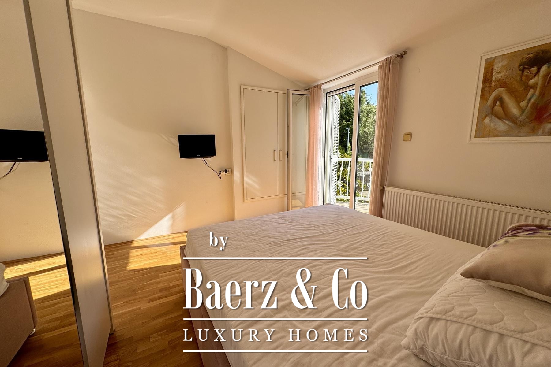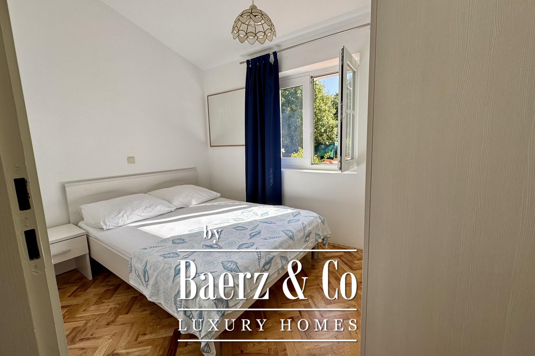 apartment consists of a bedroom, bathroom, kitchen, living room and terrace.Another additional apartment is located in the basement of the house and has two bedrooms, a kitchen, a bathroom and a storage room.There is also a garage in the yard of the house, and the garden itself is full of beautiful Mediterranean plants.Four more cars can be parked in the yard.For any additional information, feel free to contact us!