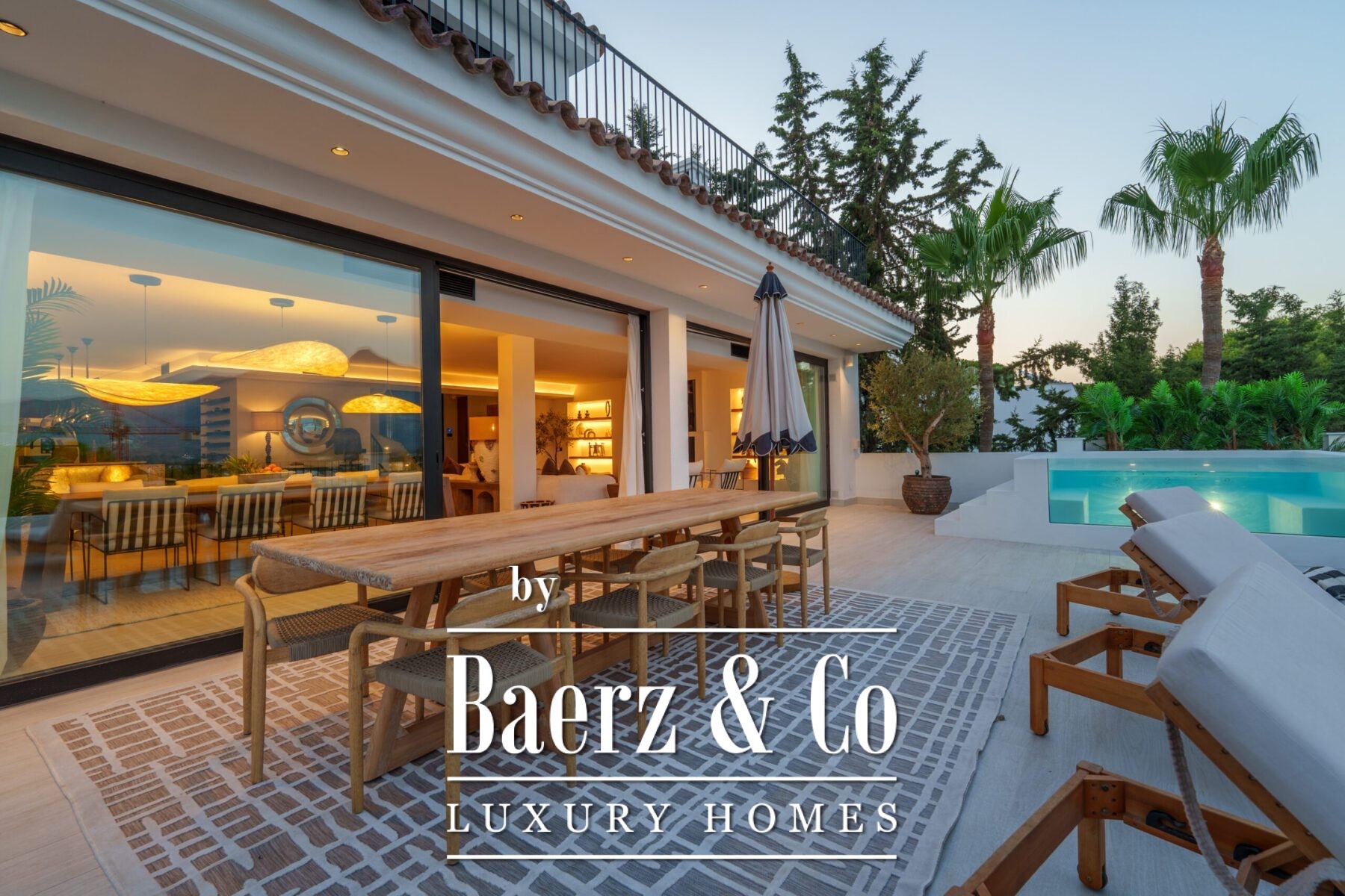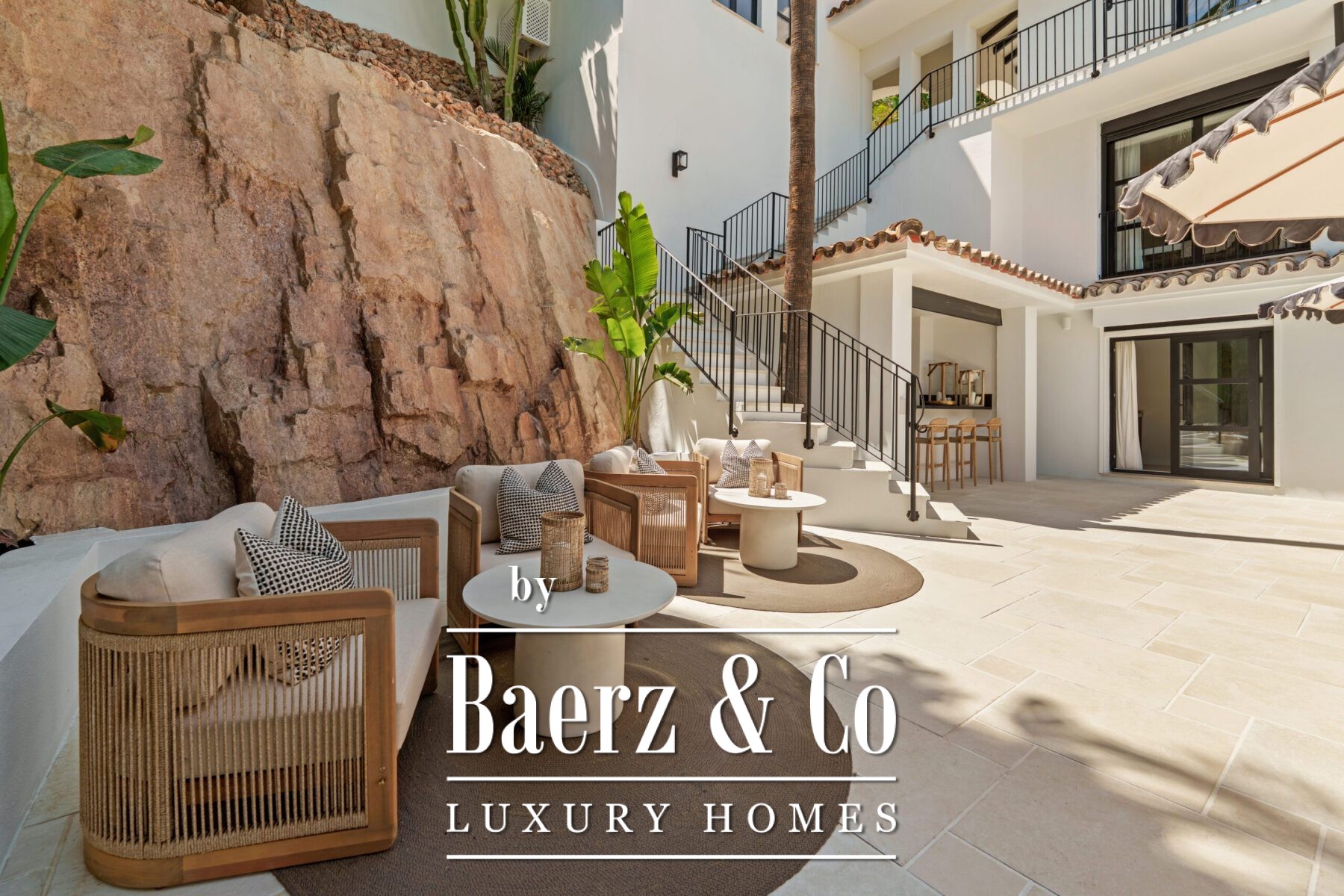 In the heart of the prestigious Nueva Andalucía, just minutes from world-class golf courses, Puerto Banús, and Marbella’s finest dining and shopping, stands this luxury villa as a masterpiece of modern Mediterranean living. This extraordinary five-level villa captures panoramic views of the Mediterranean Sea and the iconic La Concha mountain, blending timeless Andalusian charm with cutting-edge contemporary elegance.