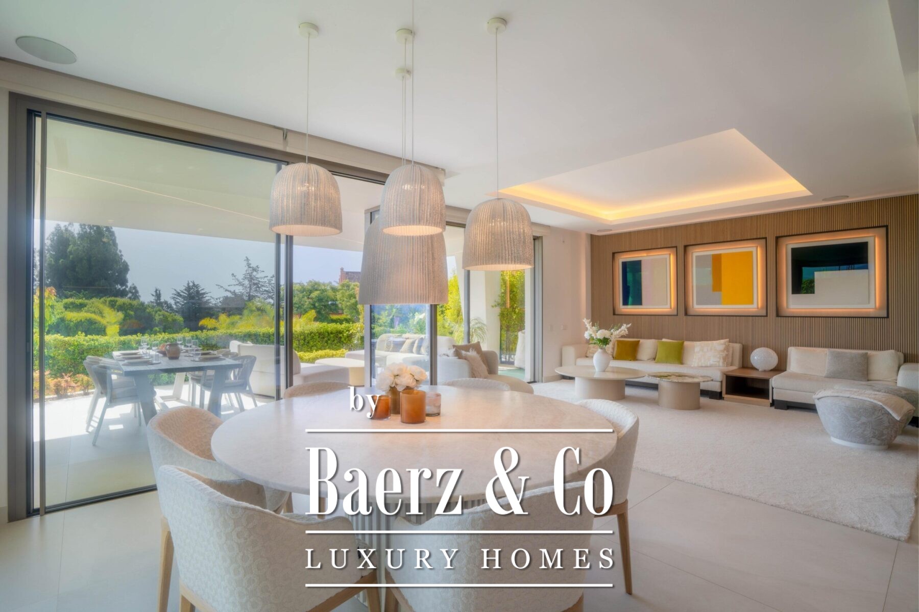 Advanced home technology includes a Lutron smart home system, underfloor heating, air conditioning, and Bang & Olufsen integrated entertainment. Fitness amenities are highlighted by a private gym with premium Eleiko equipment. The garage accommodates two to three cars and the villa stands just moments from shops, restaurants, golf, and the port. The property comes fully furnished in a style that is both welcoming and sophisticated, an exceptional offering in Marbella’s sought-after Nueva Andalucía.