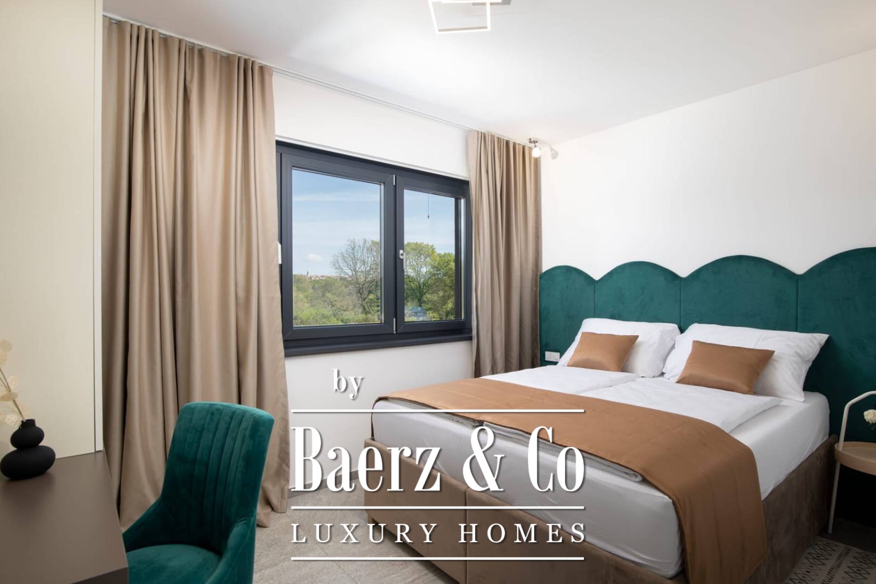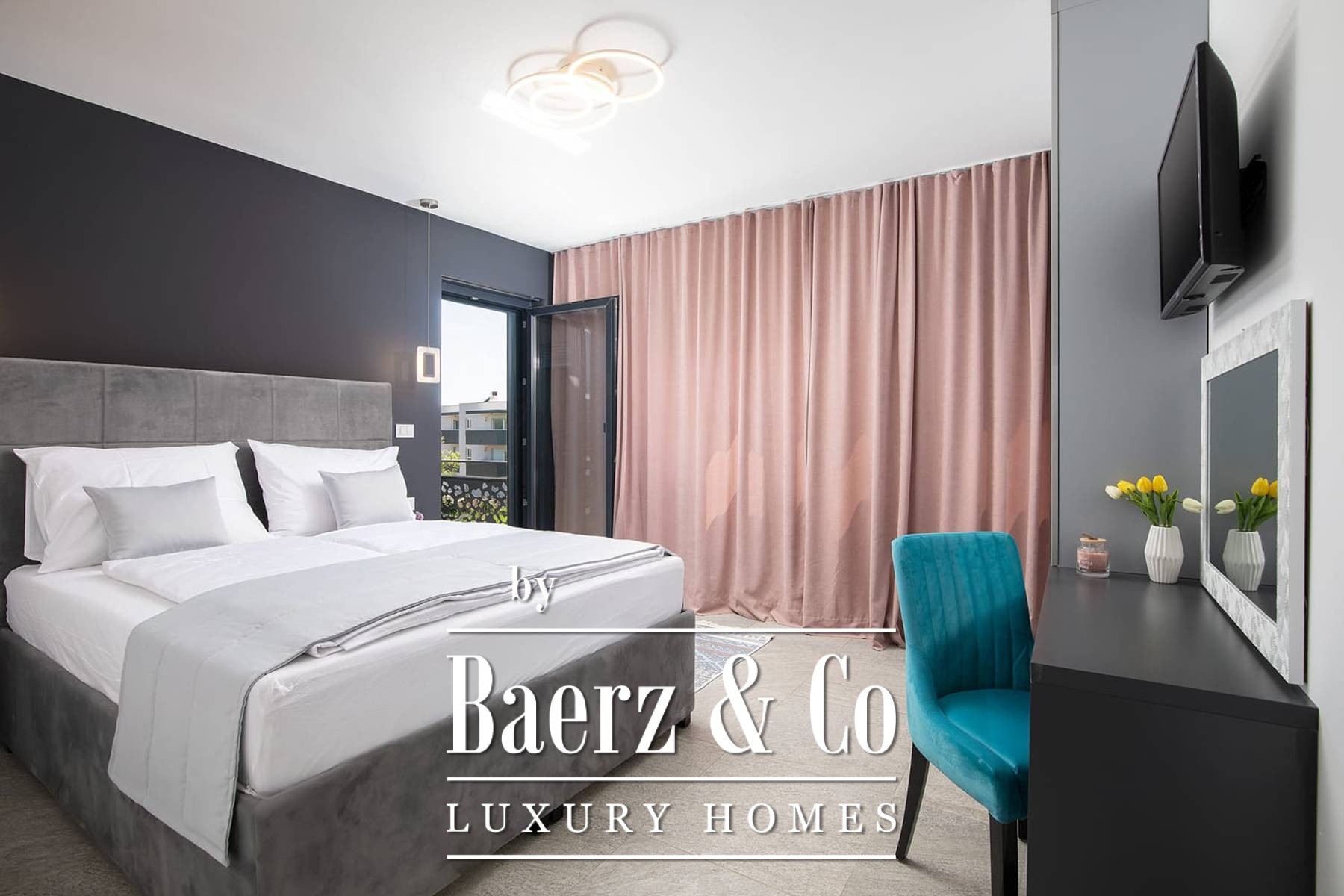 For sale is this luxurious modern villa in Medulin, net area 300 m2, located on a plot of 600 m2 in a quiet area. It consists of a basement, ground floor and first floor with the following layout: in the basement there is a wellness area with a relaxation zone. On the ground floor there is an entrance, a spacious open space living room with kitchen and dining room, three bedrooms each with its own bathroom. From the living room there is access to the terrace (part covered, part uncovered) from which access to the pool 9 m x 3.5 m and the garden, summer kitchen and children's playground. On the first