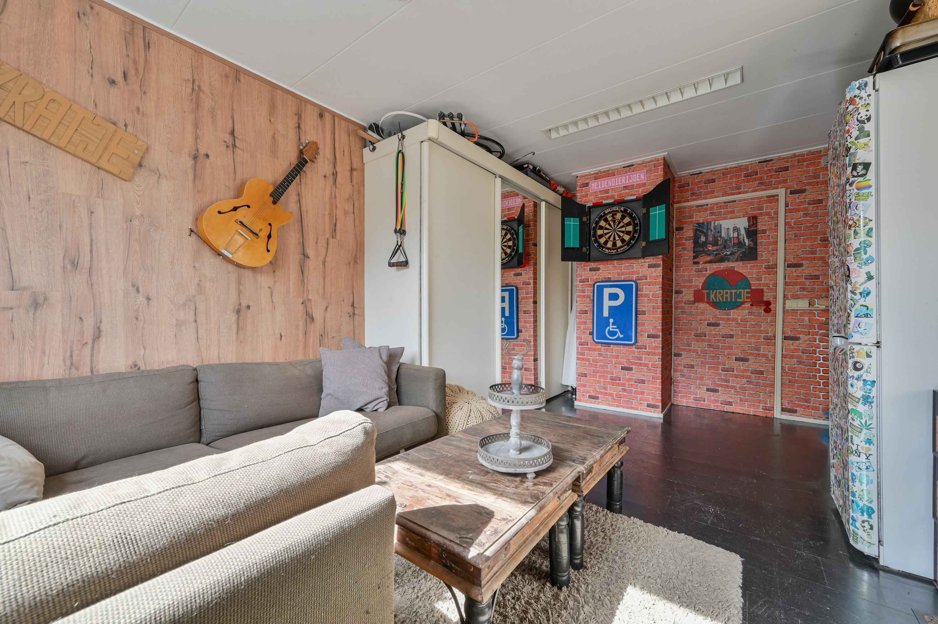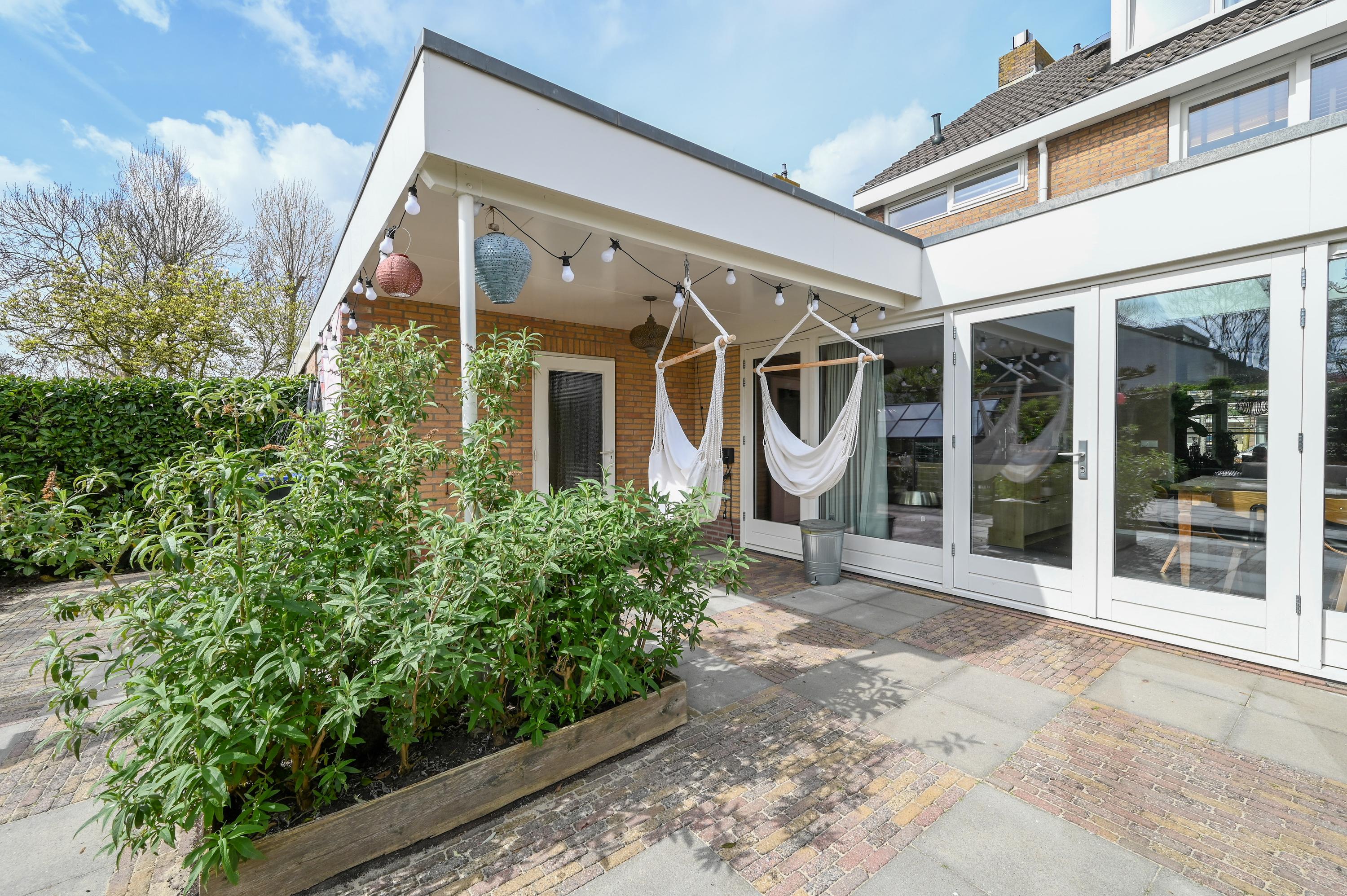 The rear is currently used as a cozy lounge area, an extension of the home where you can relax. This space is highly versatile and can easily be converted into an office, playroom, studio, or additional (work) room. It can be accessed dry from the house via the covered area.