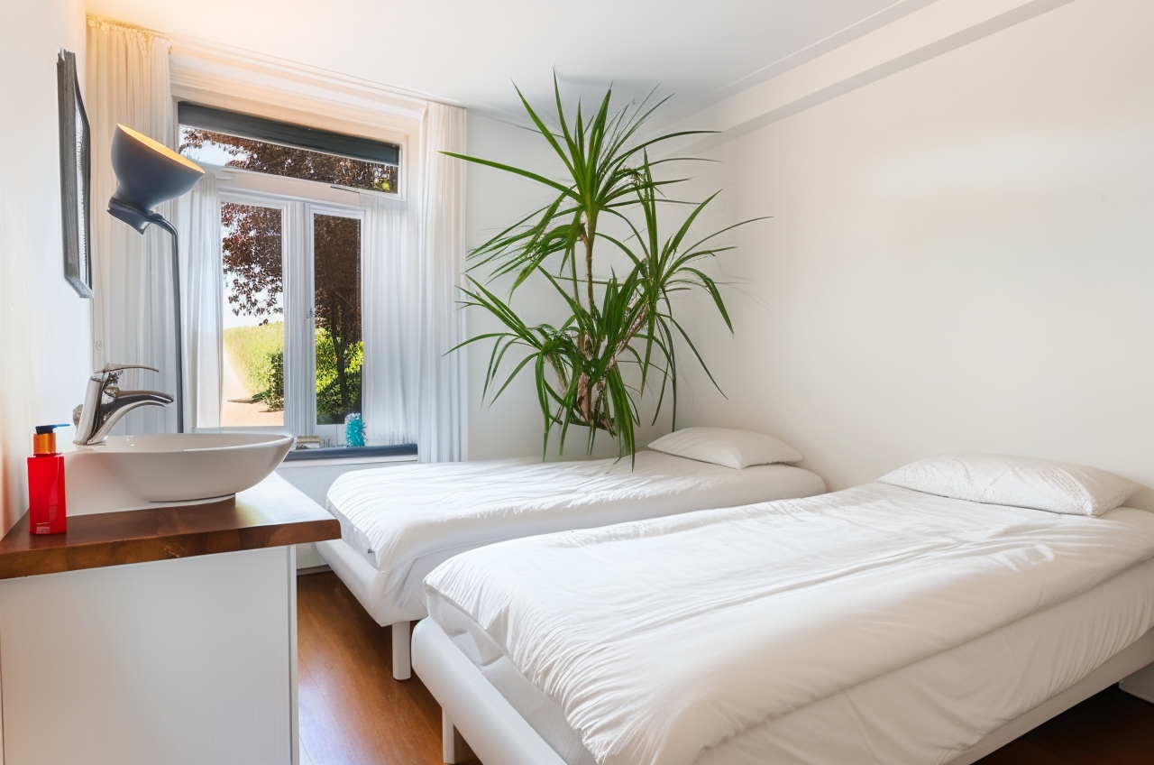 One floor above, a remarkable feature reveals itself: the fully restored conservatory. Surrounded by glass, this space offers breathtaking views of the river landscape and serves perfectly as a lounge or retreat. An intimate roof terrace adjoins this area. This level also accommodates three comfortable bedrooms, a walk-in dressing room and a spacious bathroom equipped with a bath, separate shower, double washbasin and WC.