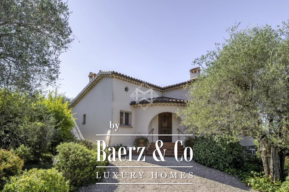 This charming villa is ideally located just steps from the picturesque village of Mougins, renowned for its gourmet restaurants and art galleries. Nestled atop a lush garden, it offers panoramic views of the verdant Esterel hills and stunning sunsets.