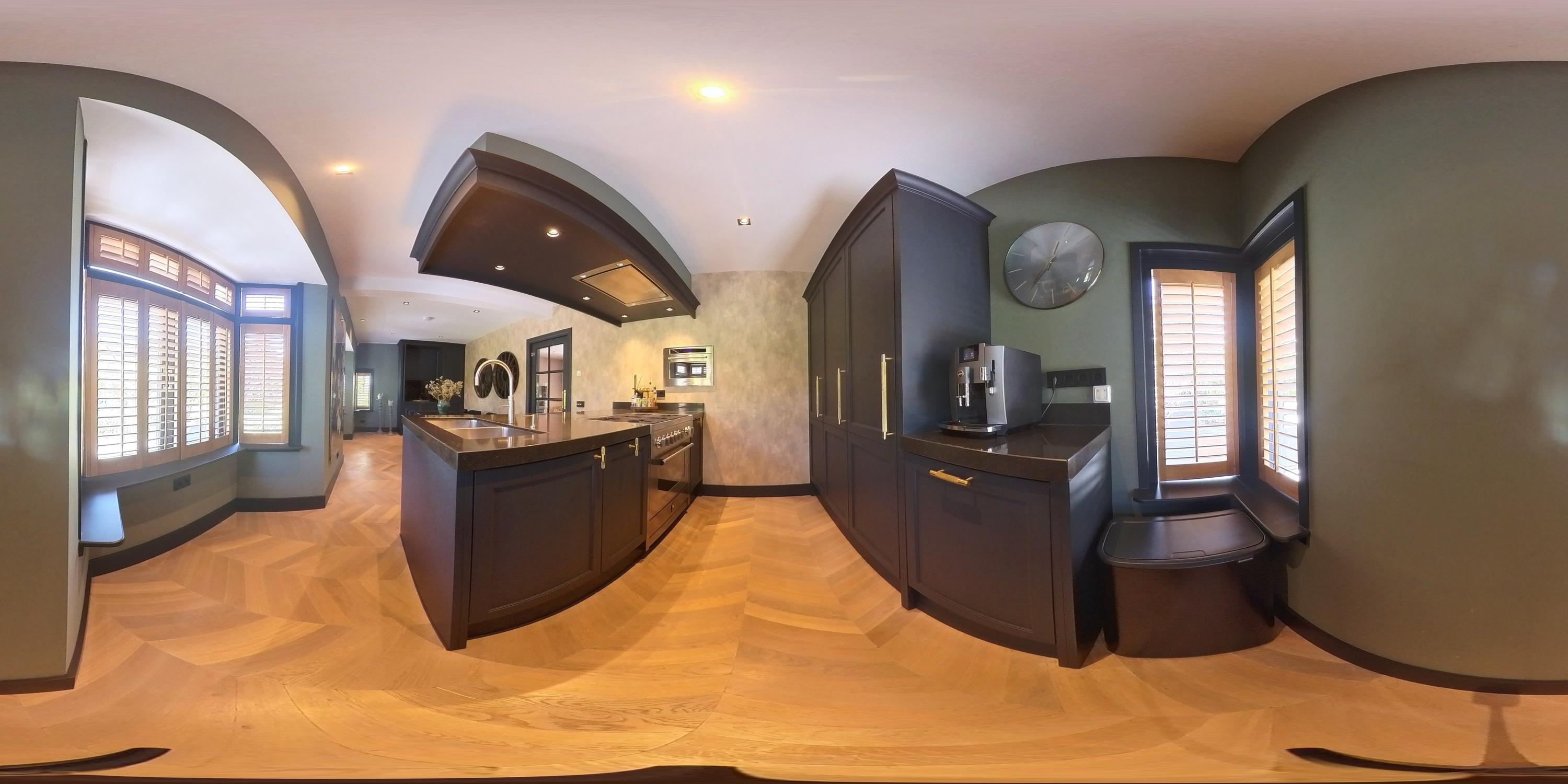 De keuken vormt het kloppend hart van de woning. Hier komen esthetiek en functionaliteit samen in een ruimte die uitnodigt tot koken, tafelen en samenzijn. De combinatie van verfijnde kleurstelling en zorgvuldig gekozen materialen geeft deze keuken een warme, exclusieve uitstraling. Niet alleen is het een volwaardige werkplek voor culinaire creativiteit, maar ook de ideale plek voor lange avonden met vrienden of familie. De open verbinding met de woonkamer onderstreept de samenhang van het interieur.
