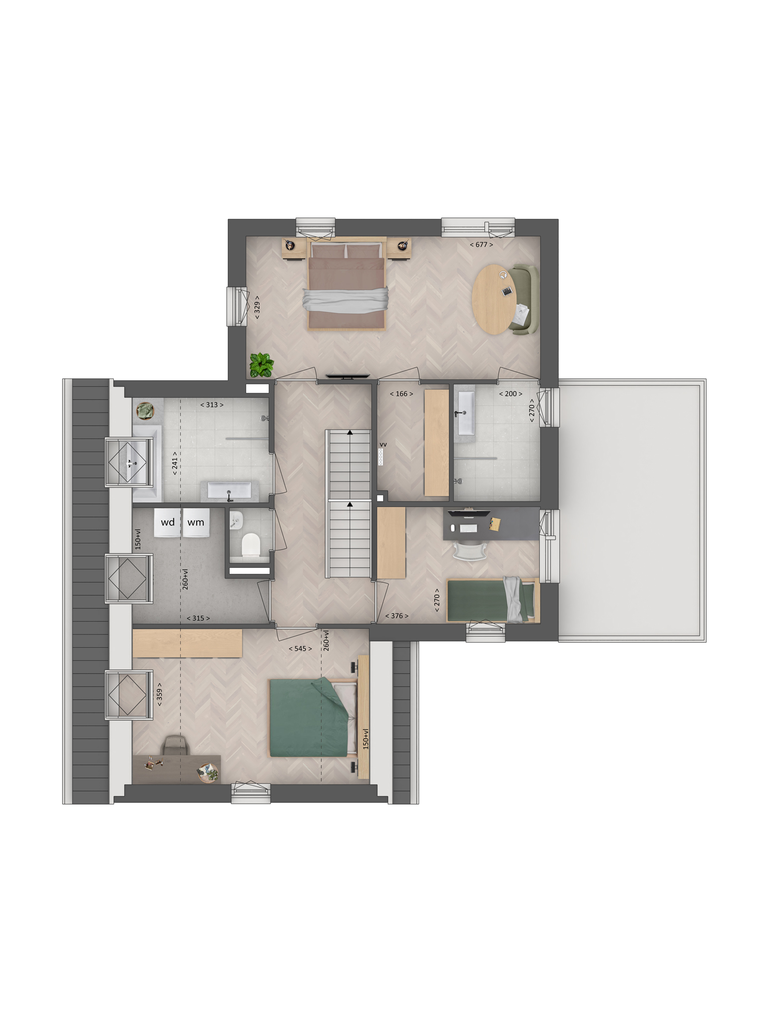 Genoeg kamers voor iedereen! Op de 1e etage vind je 3 ruime (slaap)kamers met o.a. uitzicht op de voor- en achtertuin, berging, een 2e toilet en een 2 badkamers voorzien van een douche, ligbad en wastafel. Op de 2e etage vind je nog 2 ruime (slaap)kamers en een afgesloten technische ruimte. Met het energielabel A++++ is de woning enorm energiezuinig en goed geïsoleerd. Ook heeft de woning zonnepanelen. Dat is nou slimmer verwarmen: goed voor je portemonnee en het klimaat!