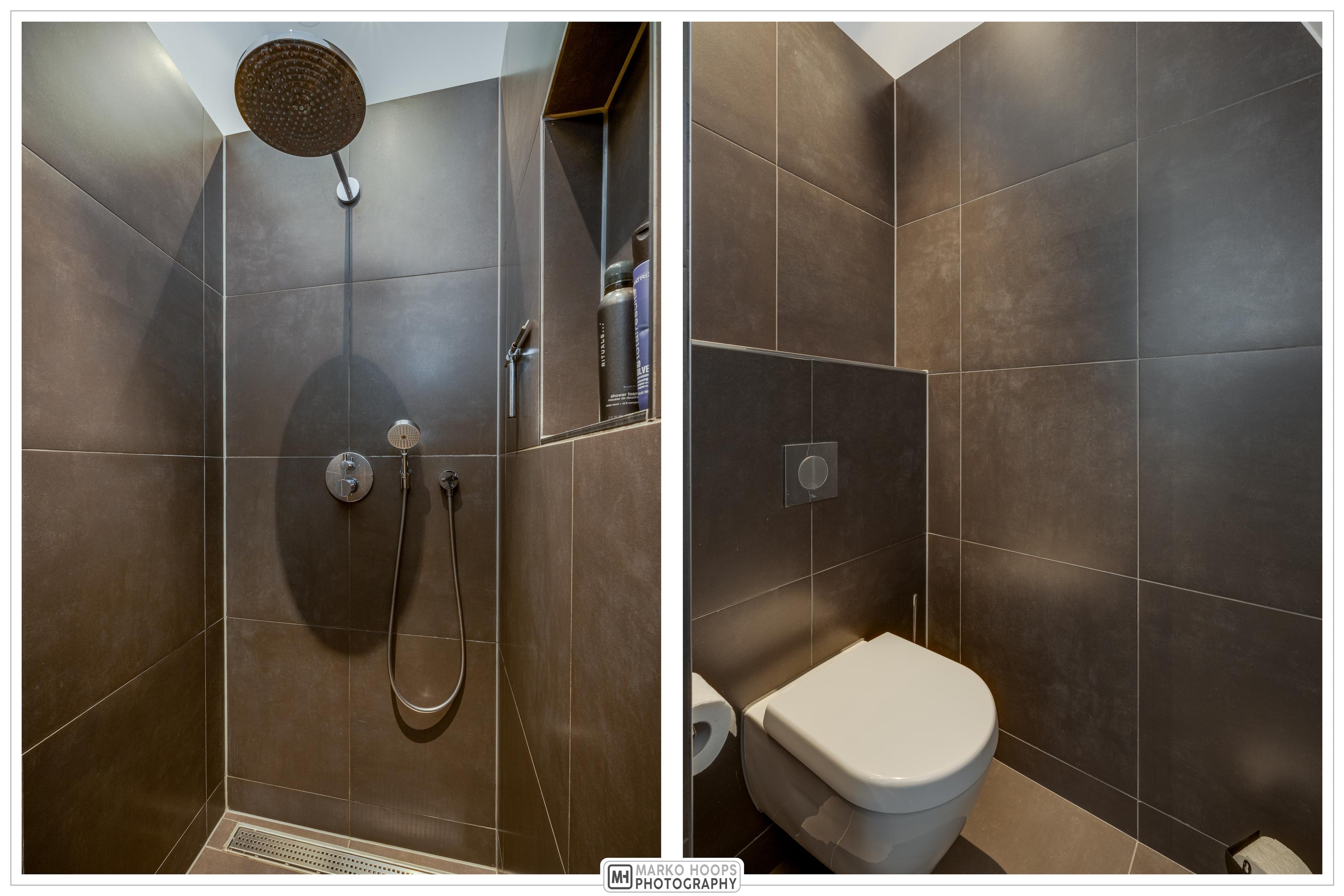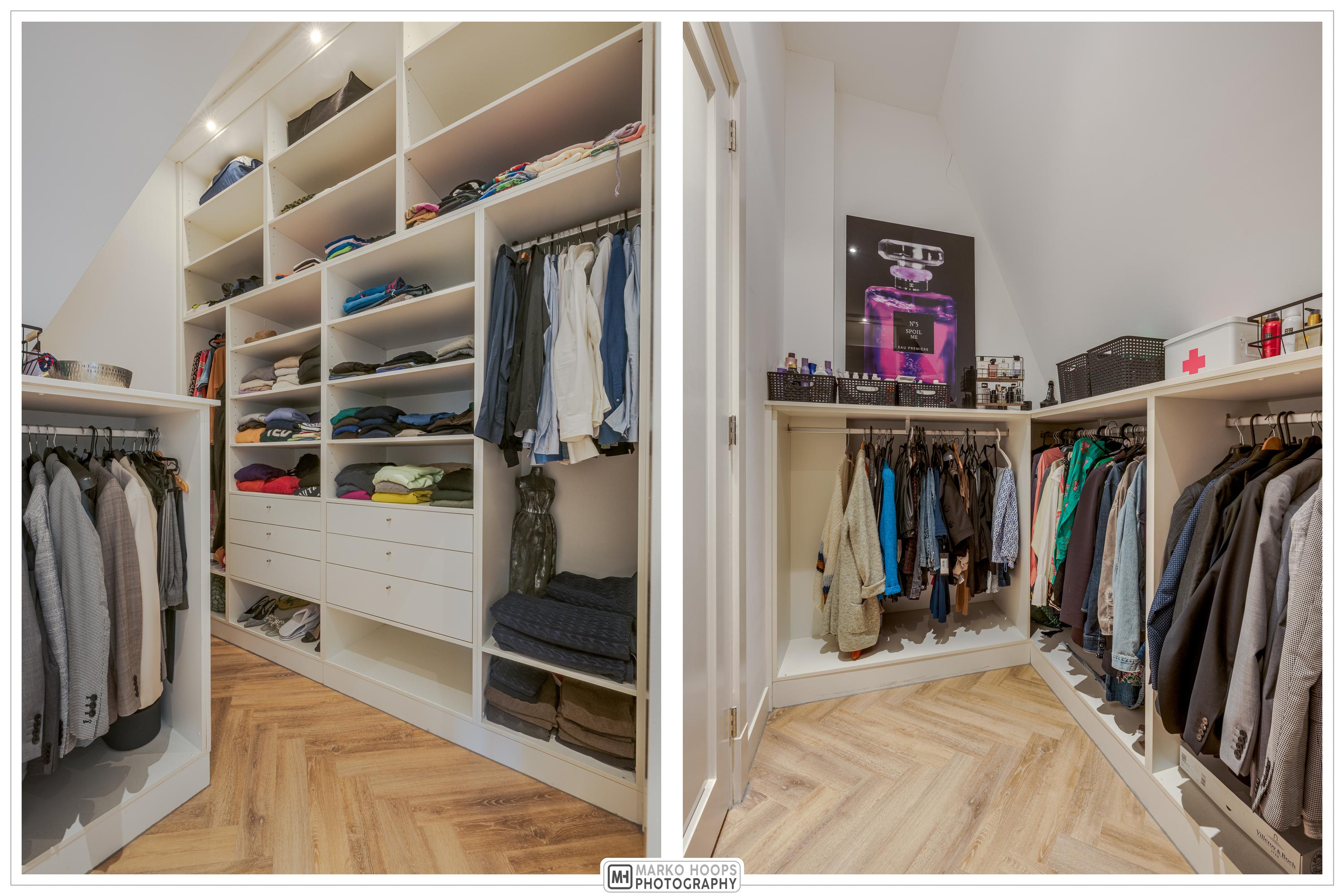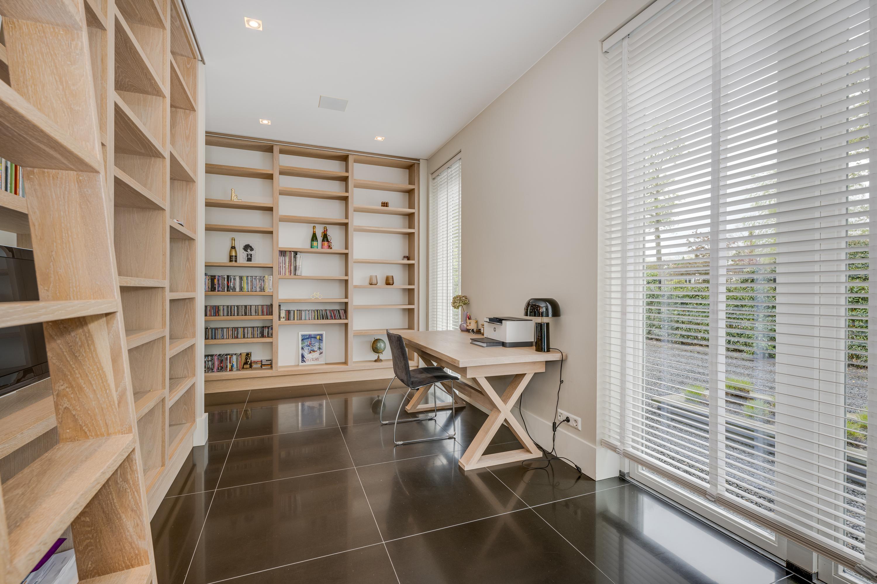 The modern kitchen is equipped with all desirable equipment, with the cooking island having a double sink, dishwasher, refrigerator and a gas and induction hob. The high wall provides space for the steam oven, combination microwave oven and coffee machine. In addition to cooking, the kitchen offers space for a very spacious dining table with a cozy gas fireplace. The double doors from the kitchen give access to the spacious terrace. Next to the kitchen is the utility room, equipped with a sink, plenty of cupboard space and a door to the garden.