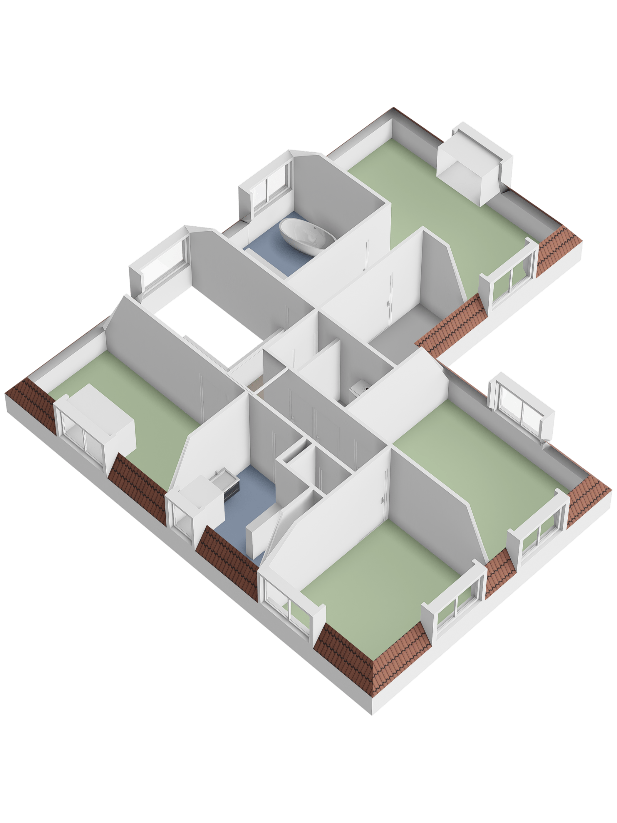 Via the beautiful stairs you reach the landing with beautiful high doors that provide access to the various rooms. Behind these doors there are a total of four large bedrooms, two bathrooms, the technical room and a room for the washing and drying facilities. Of the four bedrooms, three are used as a children's room with a shared bathroom with a double sink and a walk-in shower with rain and hand shower. There is also a separate toilet on the landing.