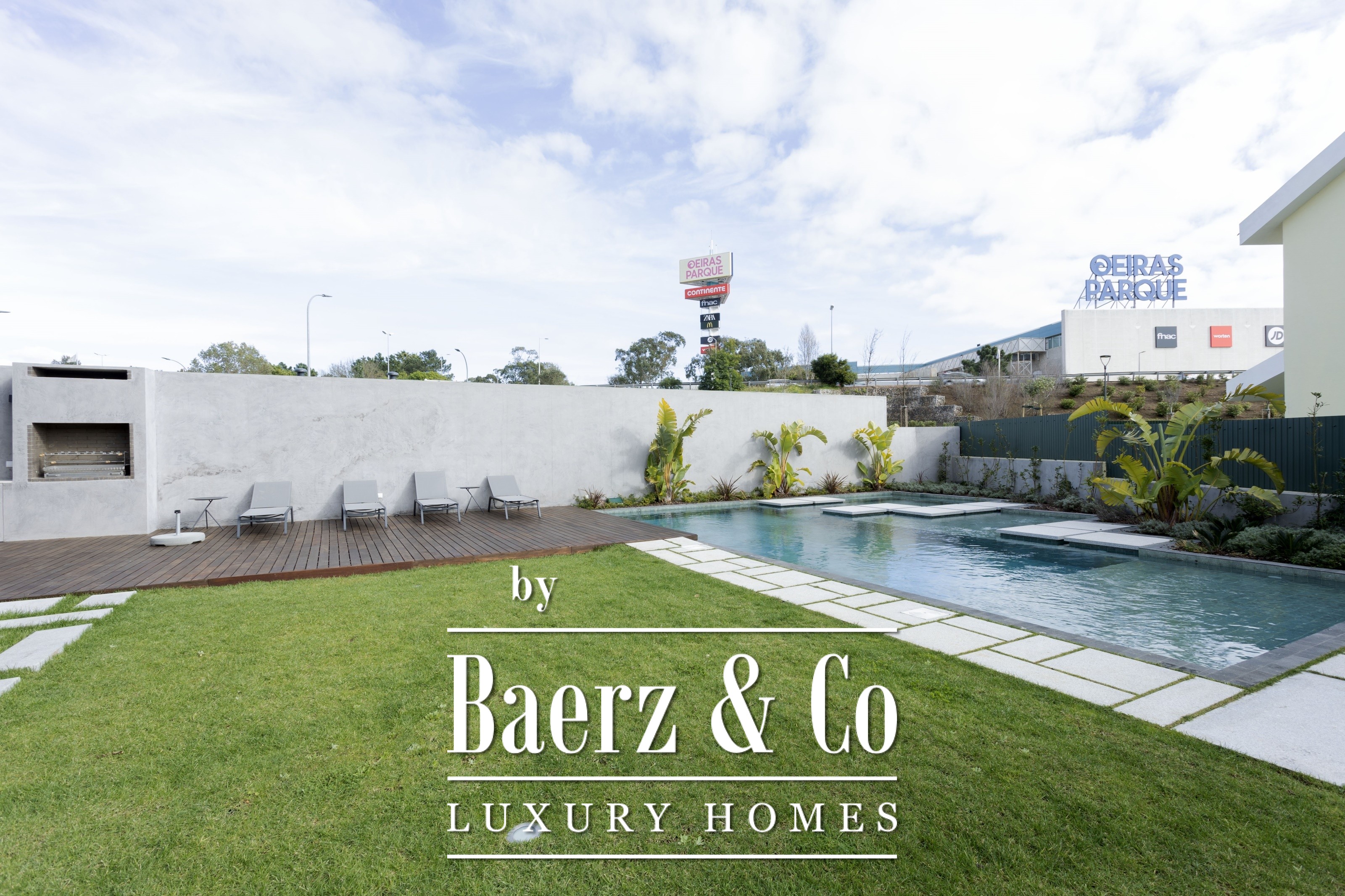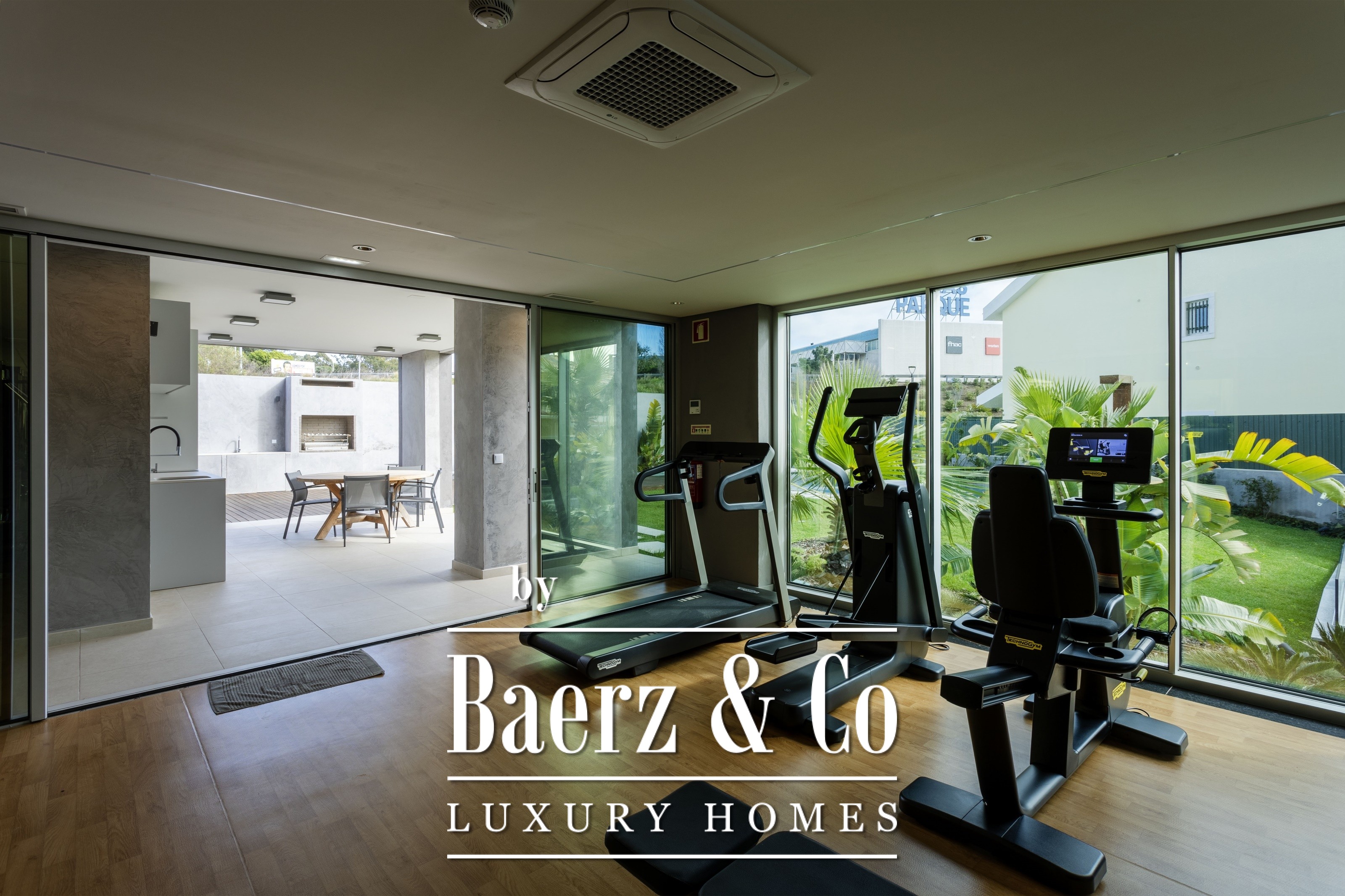 large living room with electric curtains, with access to a balcony, American style kitchen with Electrolux appliances and spacious laundry room with cabinets, sink and washing machine and dryer. All rooms have air conditioning.The condominium is on a quiet street near the Oeiras Parque Shopping Mall and 10 minutes from the beach in Oeiras.