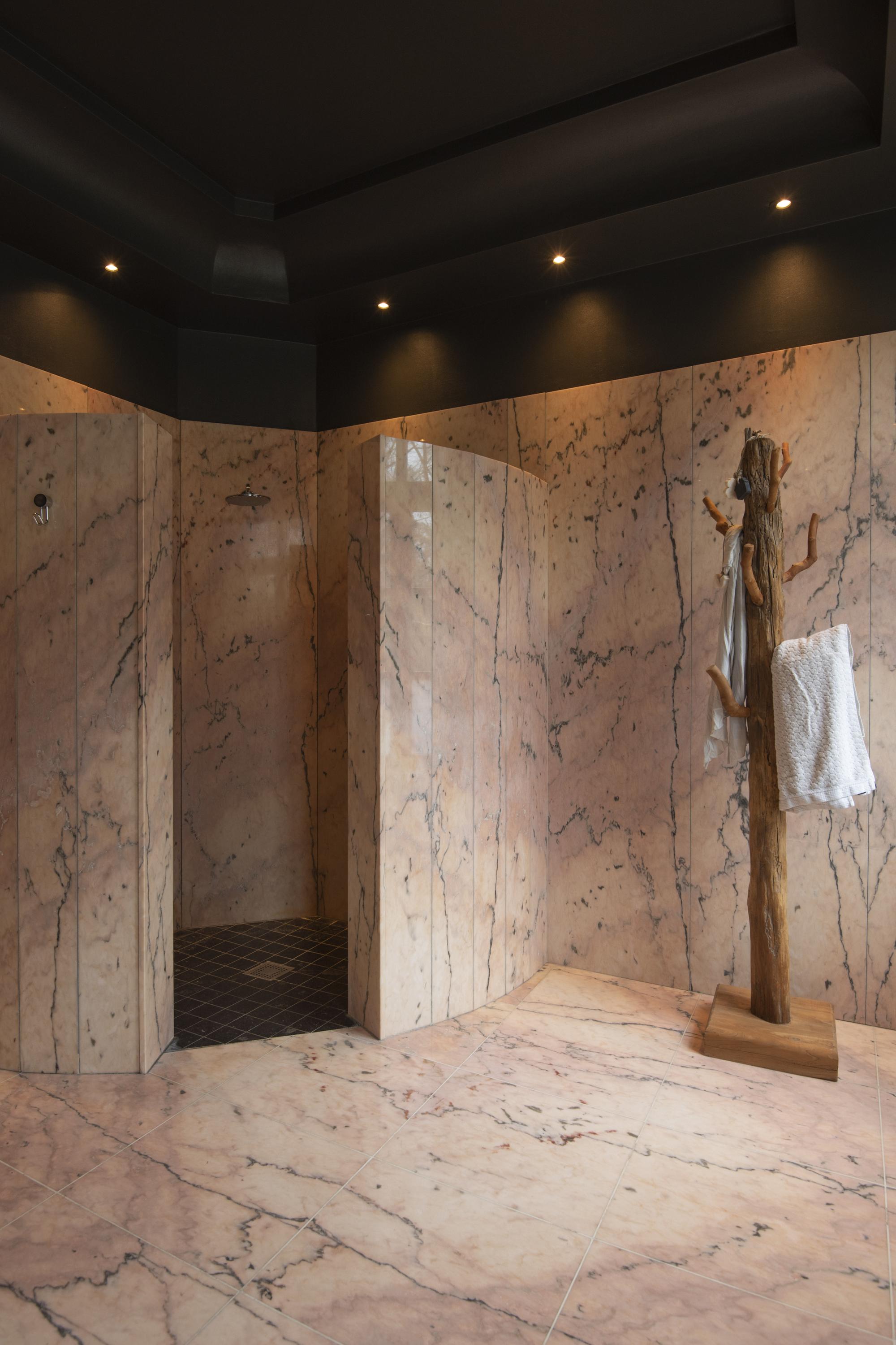 Landing with toilet, guest bedroom cum relaxation room with adjacent spa with walk-in shower, sauna and bathtub under the excellently insulated high roof on the second floor.