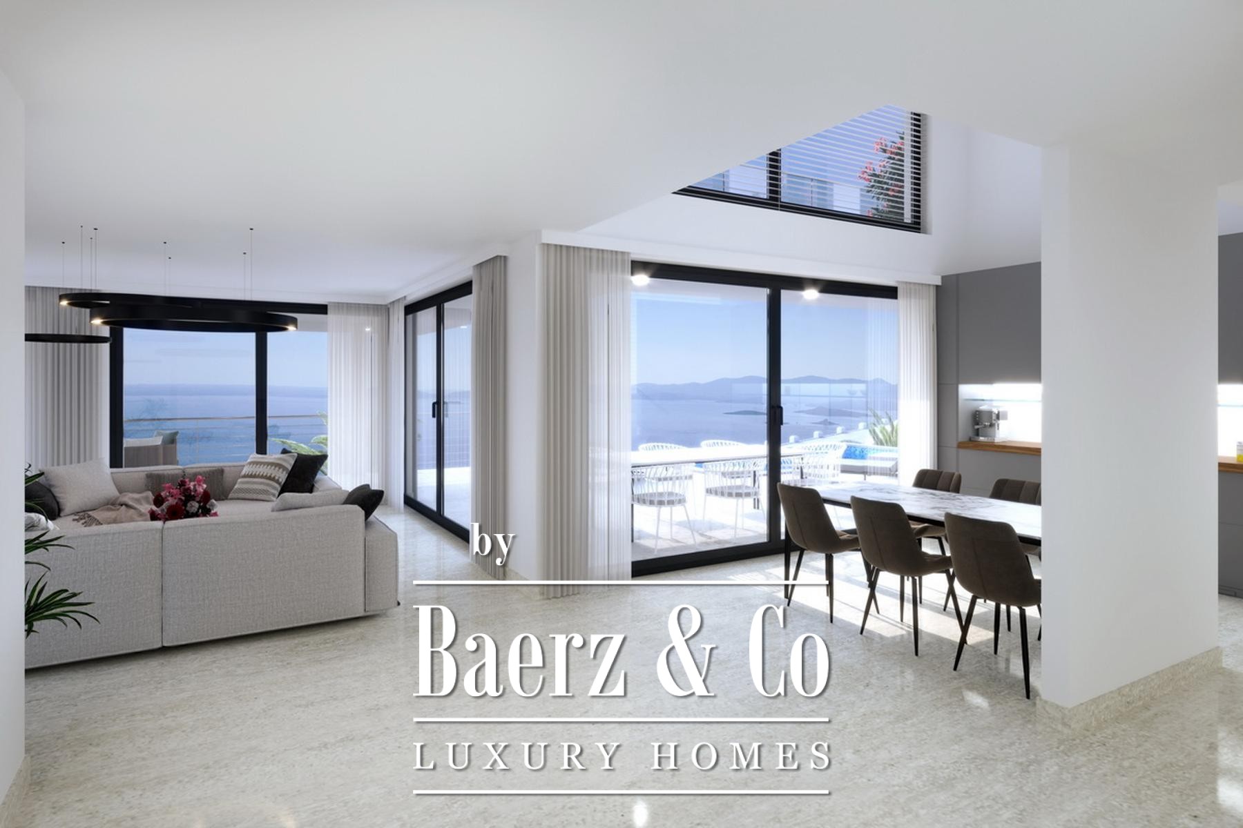 Orebić, project of a modern luxurious villas, located on the beautiful southern slopes of the Pelješac peninsula in the oldest protected wine area in Croatia. The villa is located on a plot of 519 m2, and consists of a basement where there is a swimming pool, a terrace with a total of 27 m2 of living space. The ground floor consists of a covered terrace, covered passage, entrance loggia, room, corridor, dining