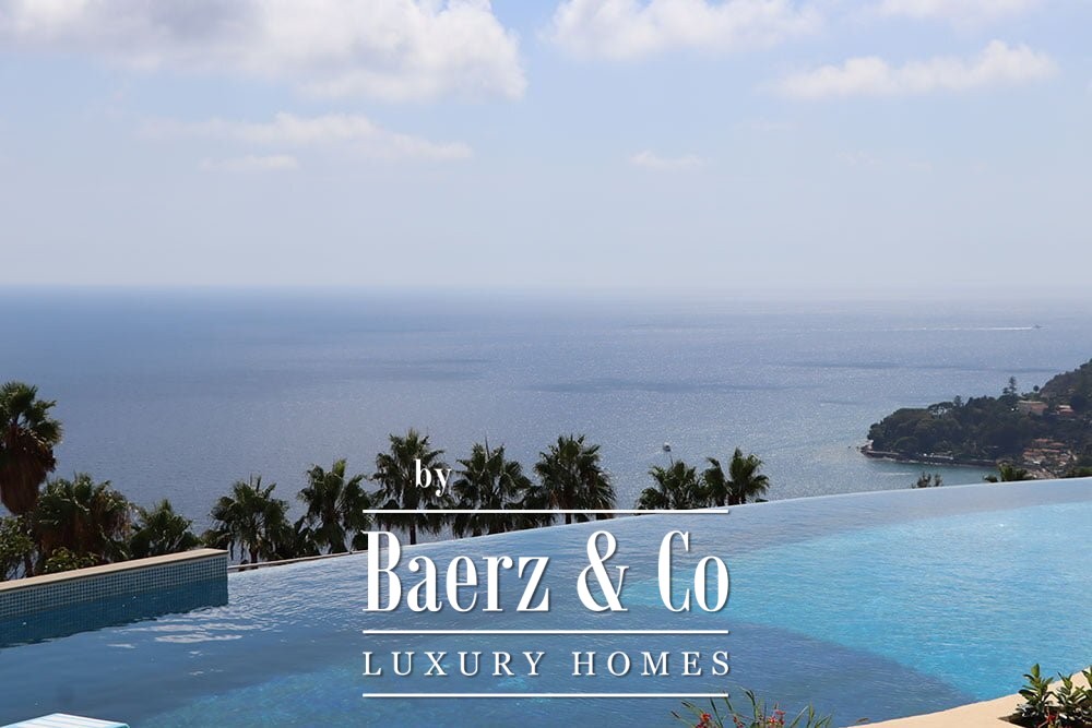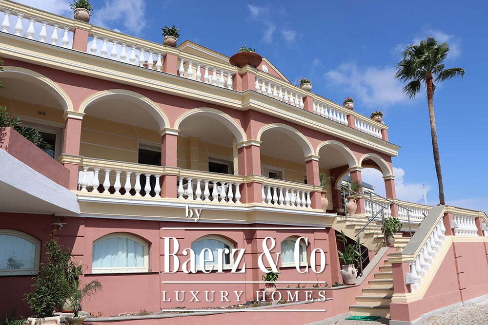 Ascending to the first floor reveals eight bedrooms and six bathrooms. The master suite features an office, a walk-in closet, a spacious ensuite with jacuzzi, and private access to the terrace. The villa is framed by a 2,000 m² plot, balancing privacy with effortless entertaining. This property offers a unique vantage for those who value Mediterranean light and coastal serenity.