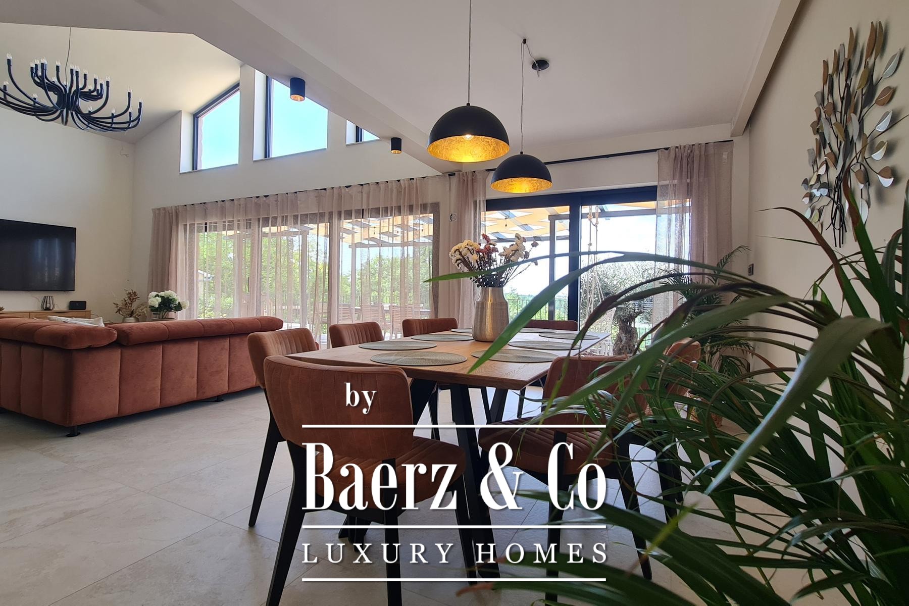 Completed and furnished in July 2024, the villa sets a standard in modern construction, with interiors crafted from custom-made furniture and quiet accents of tradition. Floor-to-ceiling glass opens the open-plan living, dining and kitchen area toward a sunlit terrace, forming a continuous dialogue with the landscape beyond.