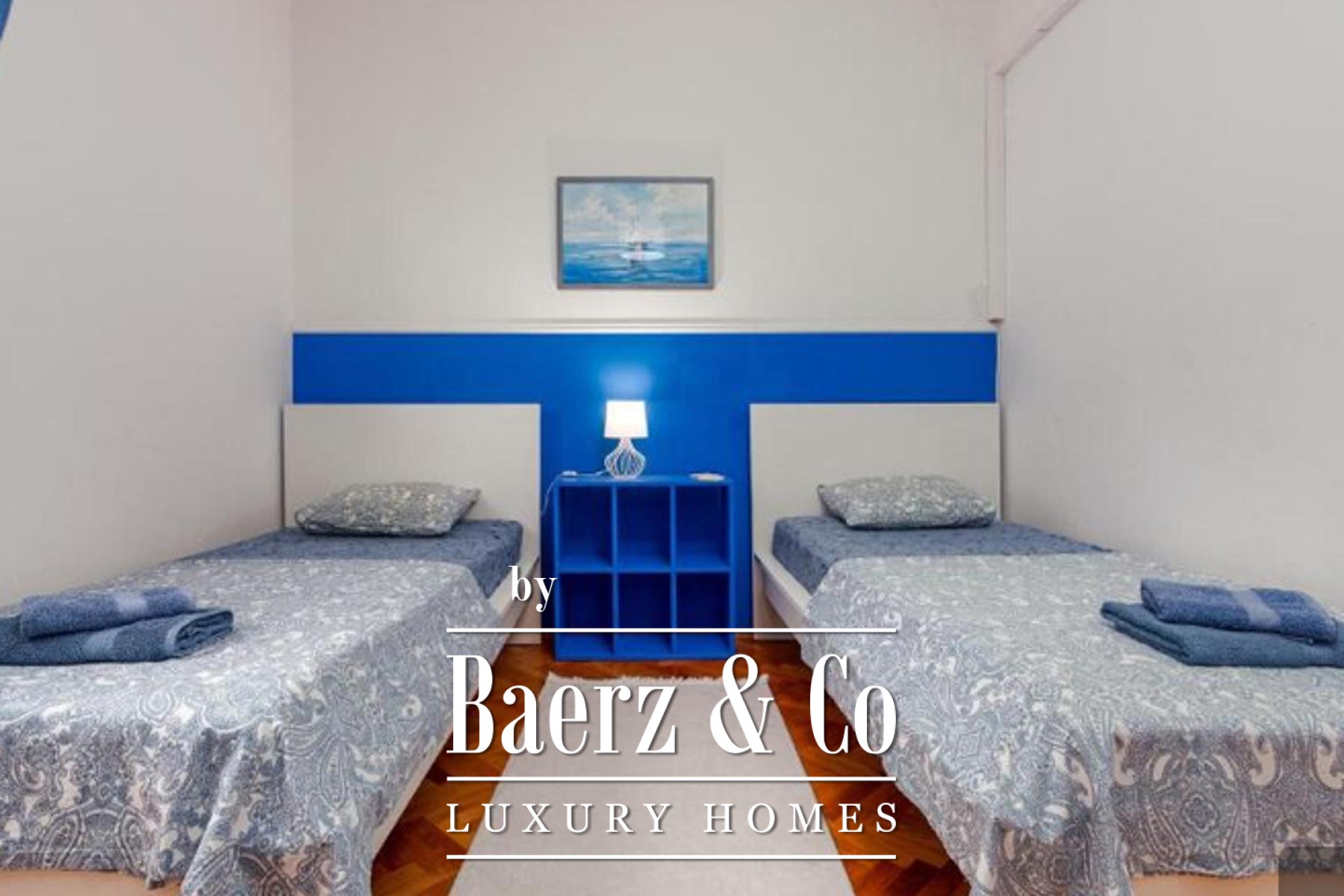 Meticulous renovations were completed in 2022, incorporating top-quality materials such as PVC joinery, Velux roof windows, Mediterranean tondach tiles, and carefully selected ceramics and sanitary ware. The landscaped Mediterranean yard invites leisure and outdoor dining amidst greenery and barbecue, and parking accommodates up to four cars. This house with three apartments Preko presents a rare opportunity to embrace Mediterranean living in a central location with sea views.