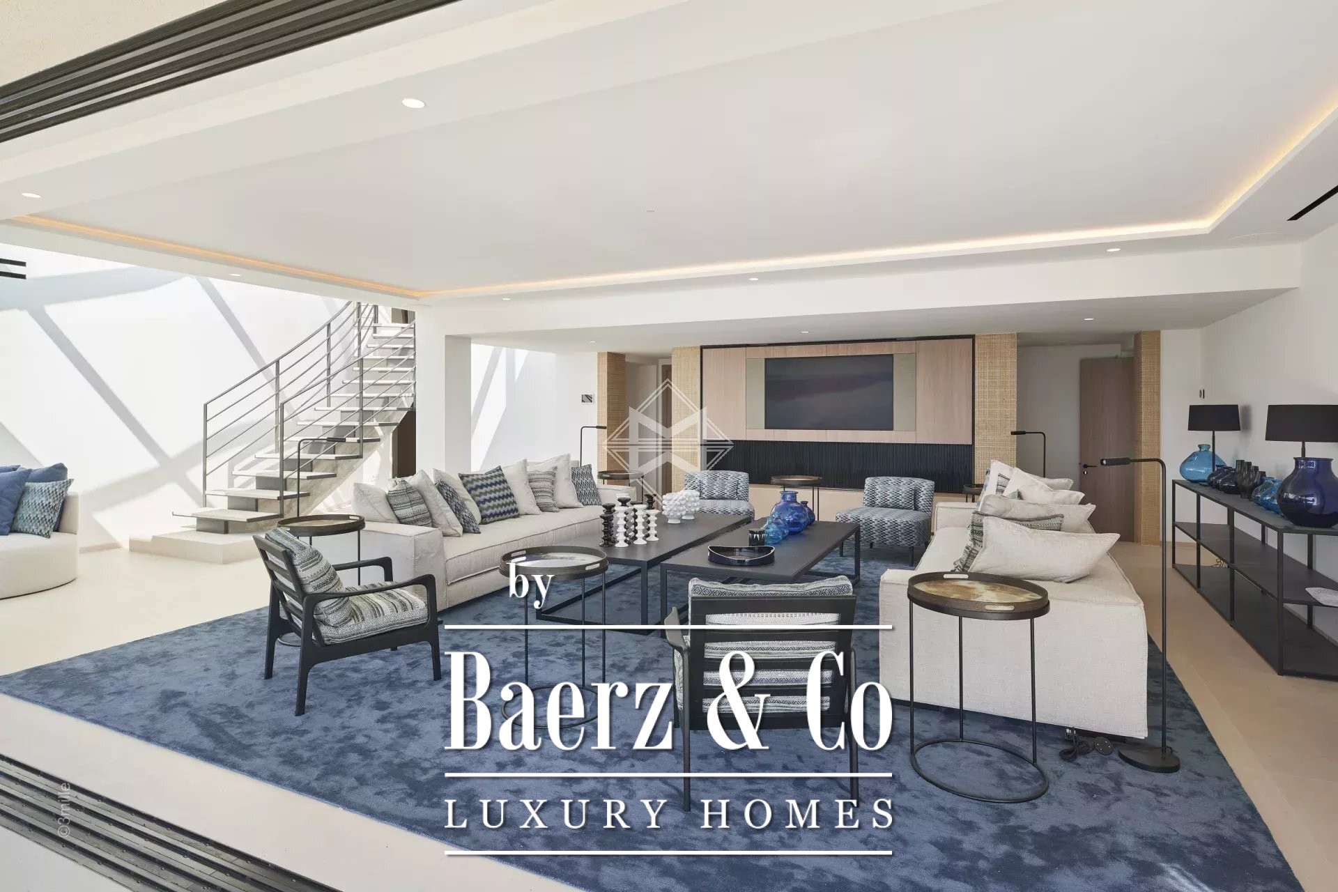 Villa Ramatuelle stands just a short walk from the famed Pampelonne beach, a contemporary residence designed for those who value privacy and architectural distinction. This villa Ramatuelle property extends across 510 m², set within a gated enclave amidst 3465 m² of thoughtfully landscaped grounds, where Mediterranean plants contribute natural texture and calm.
