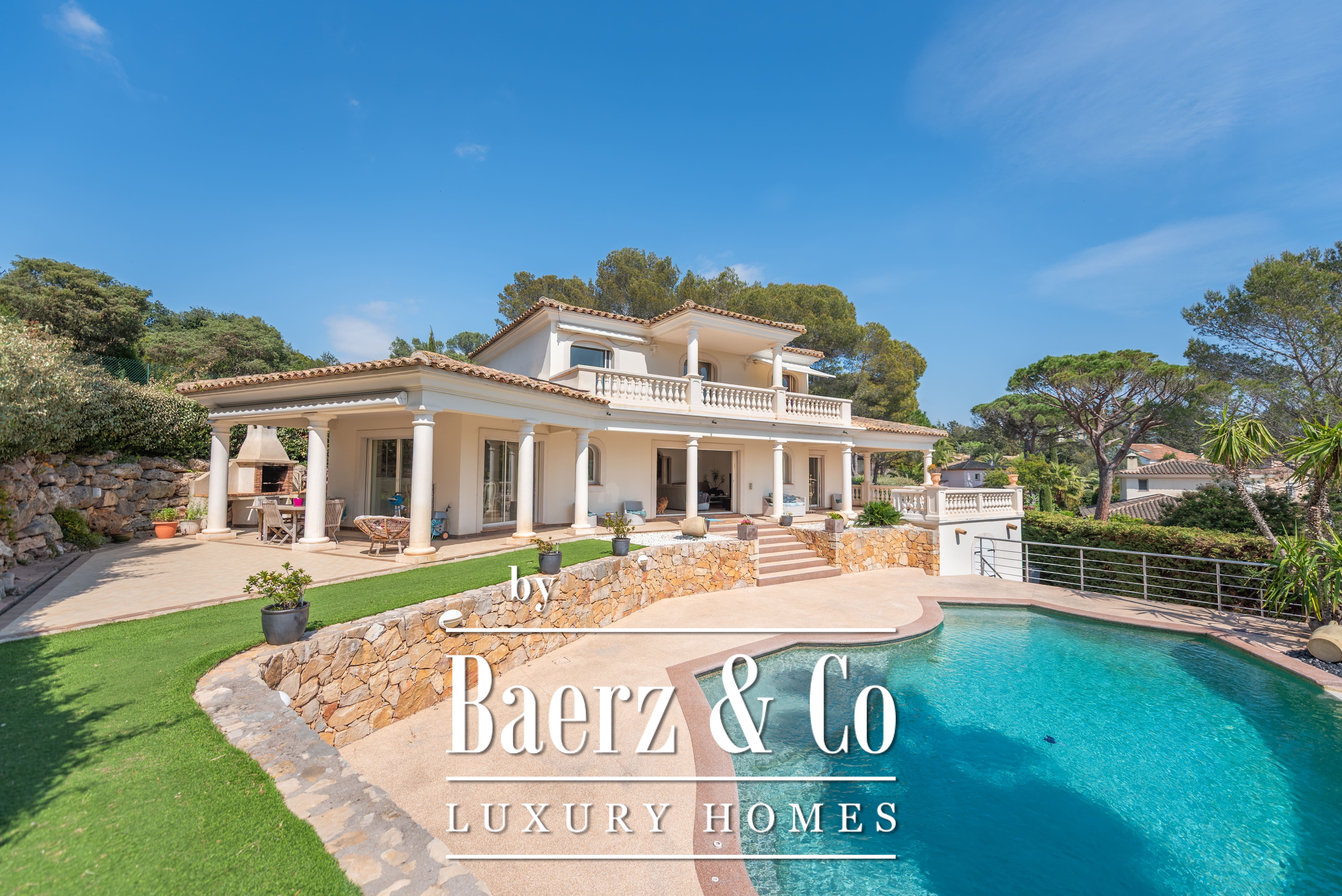 Villa Saint-Raphaël is offered for sale in one of the most desirable settings on the Côte d’Azur, set within a private, secure estate. This 205 m² residence is defined by its elevated position, optimal sunlight, and quiet residential atmosphere, a short distance from renowned golf courses.