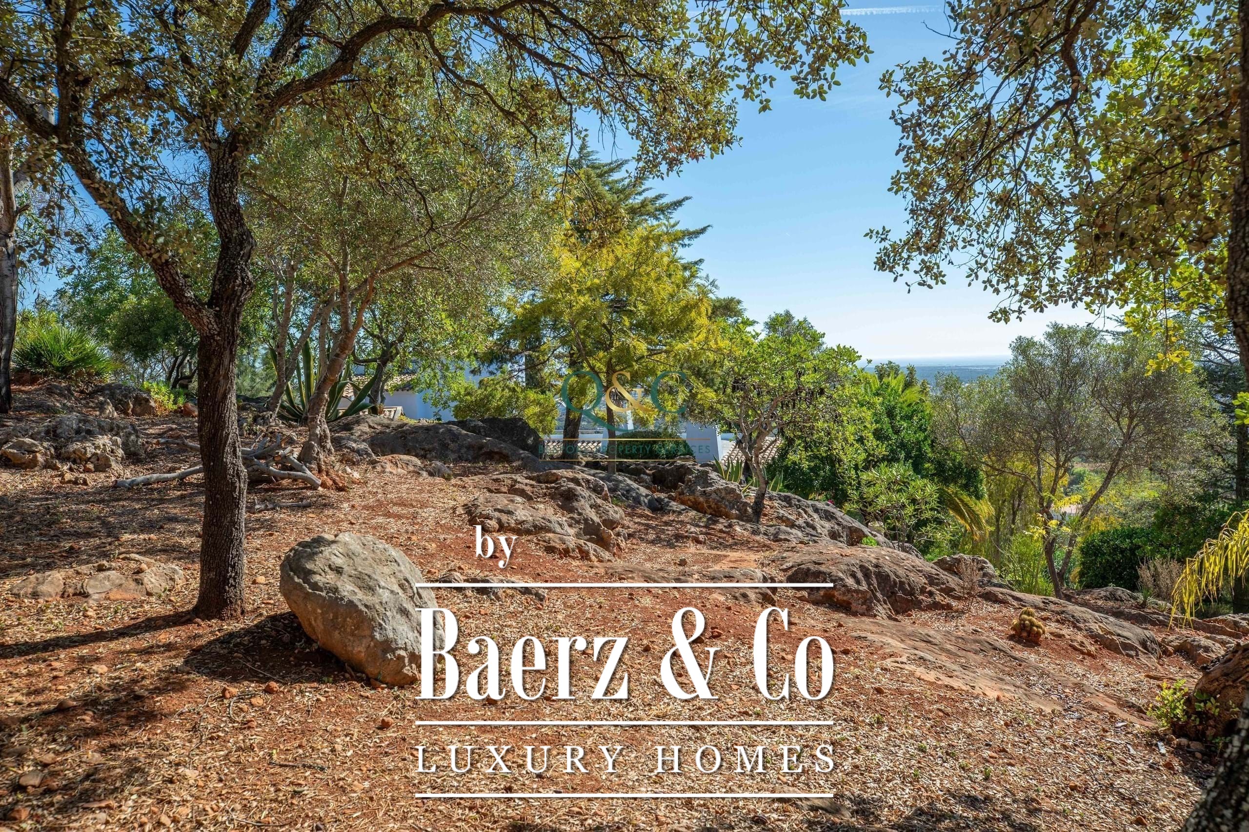 Set within a fully fenced plot, electric gates open to a sweeping calcada driveway leading to a garage, carport, and ample parking. The beautifully landscaped gardens feature mature trees and a well-chosen selection of drought-tolerant plants, creating a lush yet low-maintenance haven.