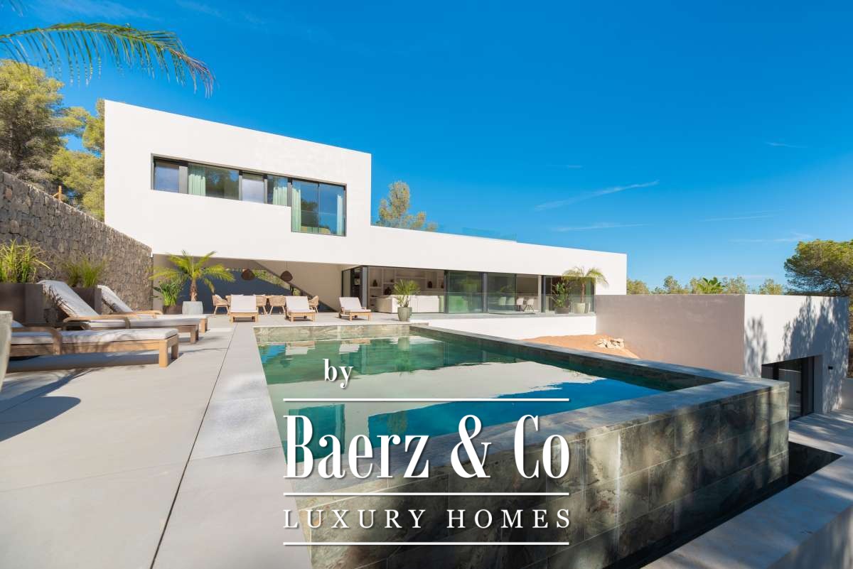 for a sophisticated touch. The master bedroom has its own private terrace, providing a peaceful retreat where you can enjoy the stunning views and surrounding nature. Thanks to its smart design, the villa offers a perfect balance between privacy and open living areas, making it an ideal home for both family life and relaxation.The property is equipped with modern technology and high-end features, including air conditioning, central heating, and a security system, ensuring maximum comfort throughout the year. The combination of stylish architecture, premium finishes, and a functional layout makes Casa Llisa a unique villa in one of the most desirable locations on the island.Outdoor Living in Style: A Garden and Terraces Designed for EnjoymentThe outdoor space of Casa Llisa is designed for relaxation and comfort. The villa is set on a beautiful plot surrounded by Mediterranean plants and palm trees, creating a serene and private atmosphere. The highlight of the outdoor area is the spacious swimming pool, perfect for a refreshing dip on warm summer days. Around the pool, sun loungers and lounge areas provide the perfect spot to relax in the sun or shade.The villa boasts multiple large terraces, ideal for alfresco dining, entertaining guests, or simply enjoying the peace and privacy of the surroundings. The covered outdoor space ensures that you can enjoy Ibiza’s pleasant climate all year round.Additionally, Casa Llisa offers a large garage and ample parking space on the property, providing extra convenience and security. The villa is also equipped with sustainable features, allowing you to enjoy luxury living in an eco-friendly way.Whether you are looking for a permanent residence, a holiday home, or a valuable investment, this villa in Roca Llisa has everything you need for a carefree and comfortable life in Ibiza.
