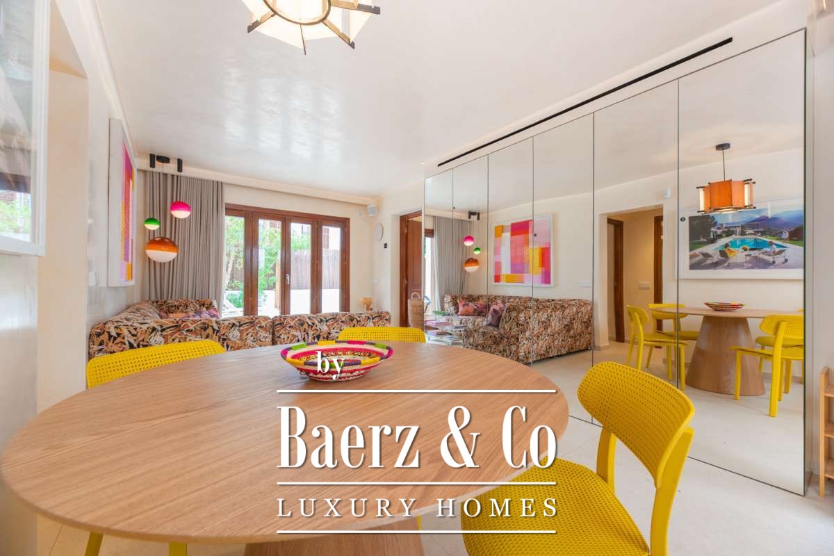 The SurroundingsA rare find in the heart of Ibiza - welcome to Santa Gertrudis, the most beloved and charming village in Ibiza. This delightful place is a favourite meeting point for locals, families, entrepreneurs, and lifestyle lovers from around the world. The lively village square with its cafés, art galleries, and excellent restaurants is just a short walk away. Everything here feels warm and welcoming, with an atmosphere that is both stylish and relaxed. Thanks to its central location, you can reach the most beautiful beaches, Ibiza Town, and the airport in no time. Santa Gertrudis offers the best of Ibiza: tranquillity, beauty, gastronomy, and authenticity.The ApartmentThis beautiful ground-floor apartment with a total of 129 m² exudes a warm and exclusive atmosphere. The 57 m² interior is designed with great attention to detail, combining comfort with a unique and stylish appearance. The living room forms the heart of the home and connects to the outdoor space through large doors, seamlessly blending indoor and outdoor living.