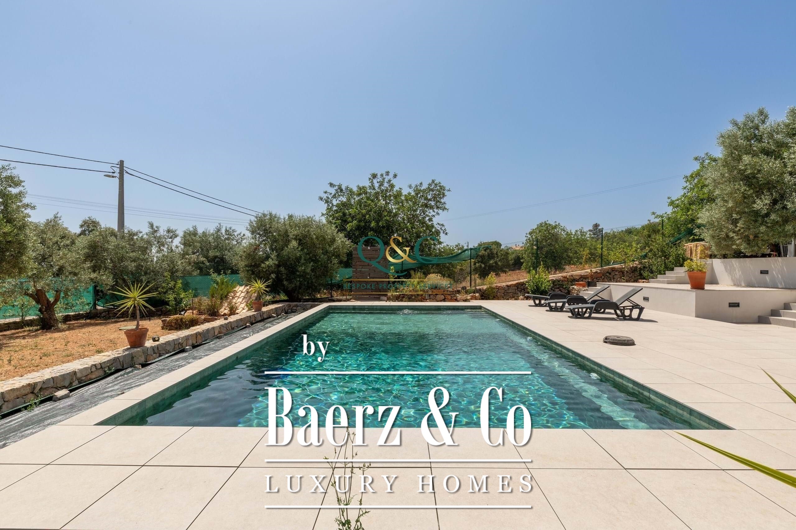 Outside, there is a magnificent swimming pool made of natural stone and treated with salt. There are several parking areas, landscaped areas with mature trees, automatic irrigation and several areas transformed into charming places to sit and relax.
