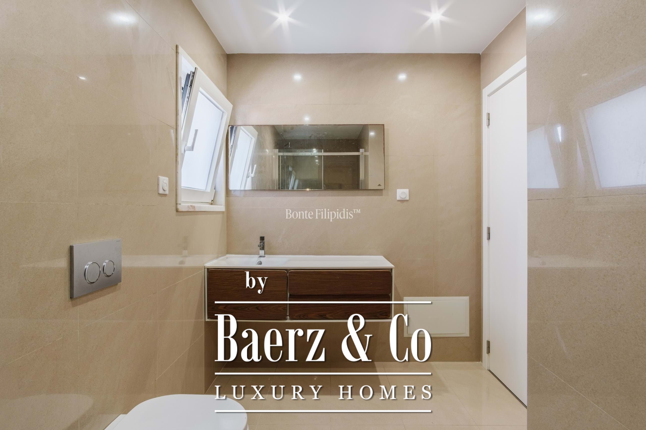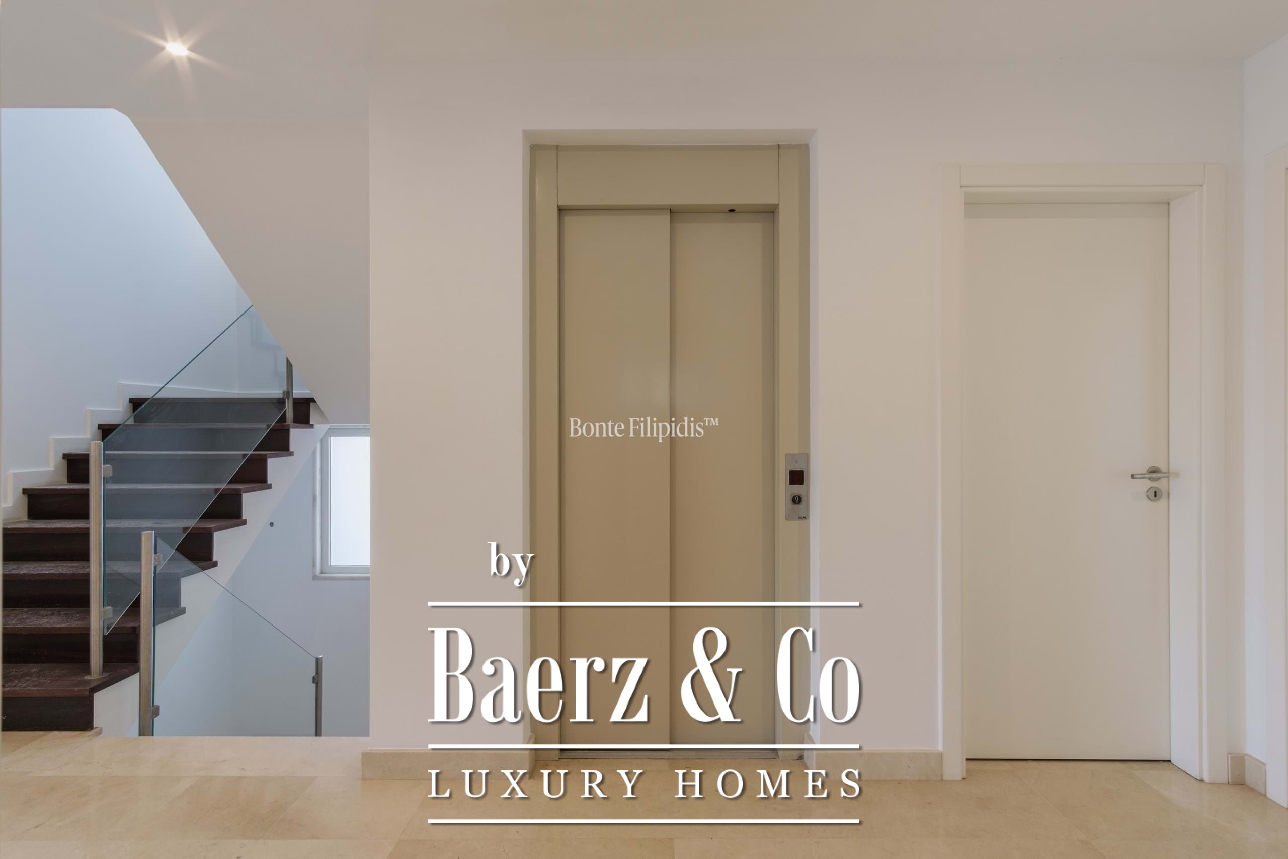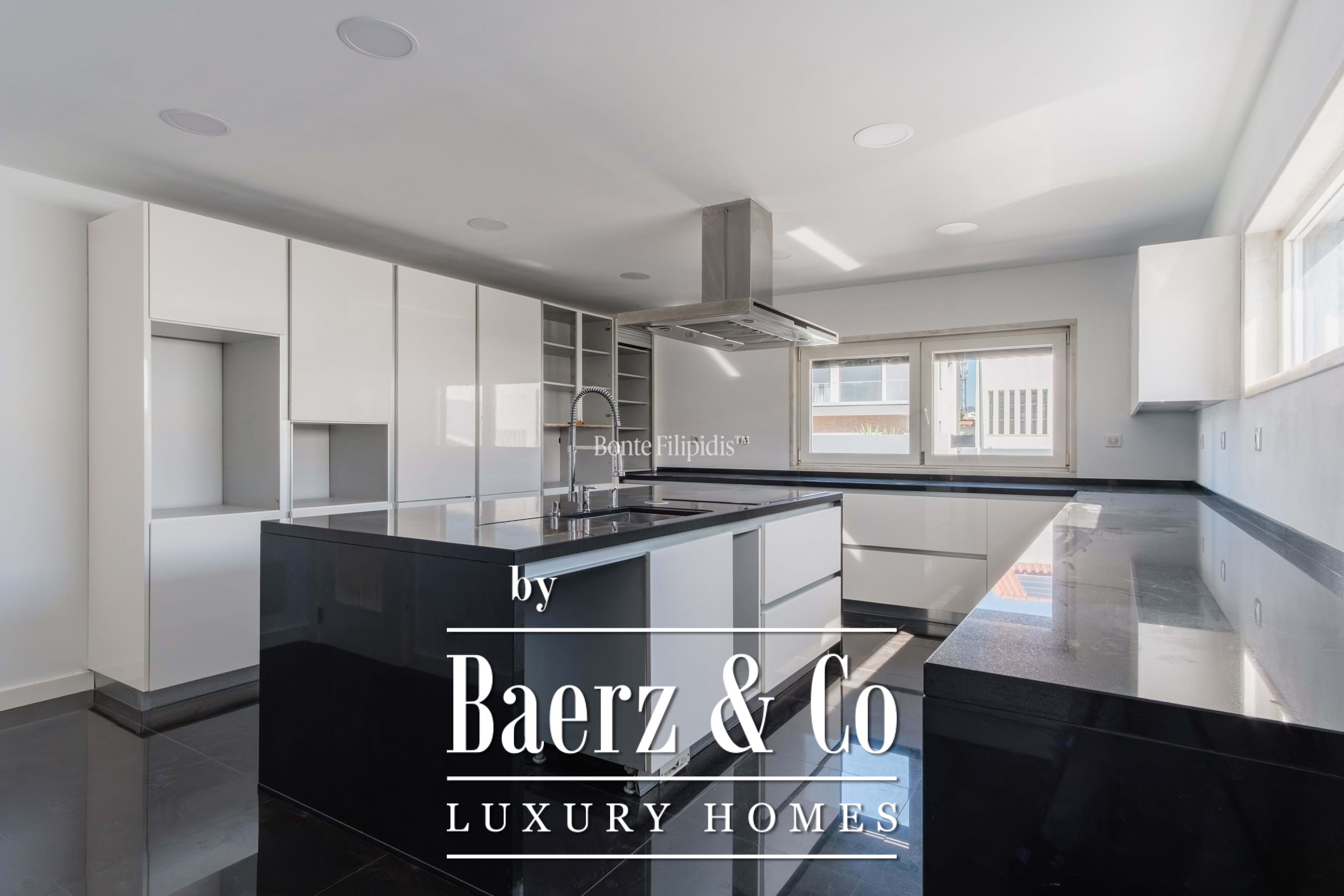 5 bedroom villa Tires Cascais offers an exceptional residential setting on a 556 m² plot, enveloped by light through its south-facing orientation. The property extends across approximately 450 m² of interior space distributed over three floors, all conveniently serviced by an elevator. The villa includes five bedrooms, highlighted by a 40 m² suite with walk-in closet, and two large living rooms of 42 m² each, creating a sense of openness and versatility. A fully equipped kitchen of 27 m² serves both daily life and entertaining demands.