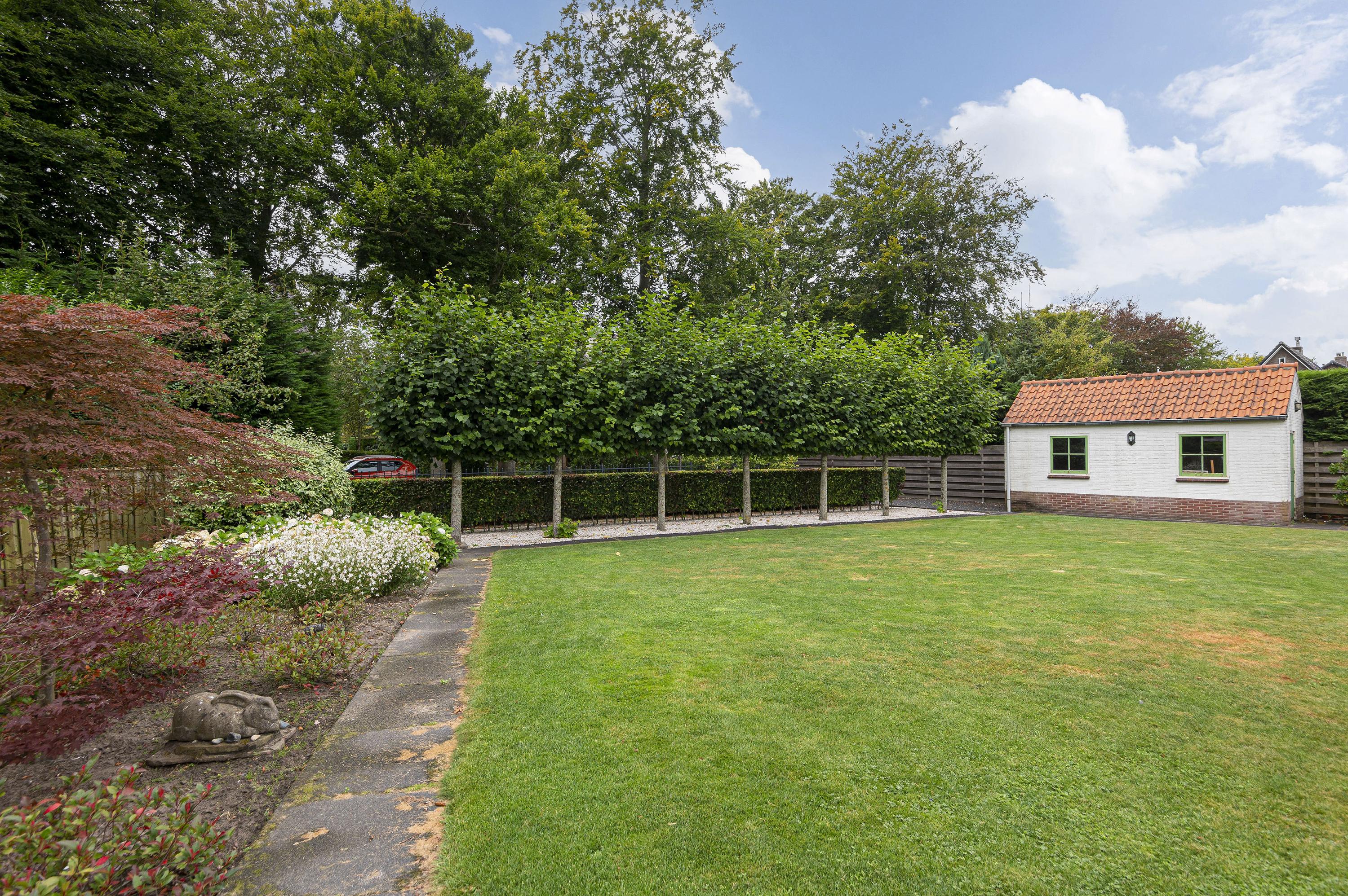 Beautifully landscaped garden with two driveways, several terraces and offers plenty of space for children to play. The garage has a separate toilet and offers enough space for the car. There is also an additional garage at the rear, which has an area of about 16m².