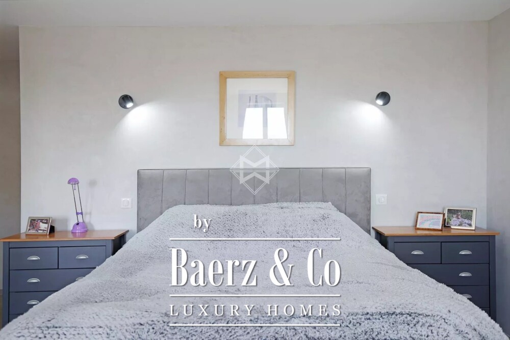 The interior has been redesigned with great care and offers generous spaces: five en-suite bedrooms, a fully equipped kitchen with dining area, and a warm, inviting living room with fireplace – perfect for cosy winter evenings.