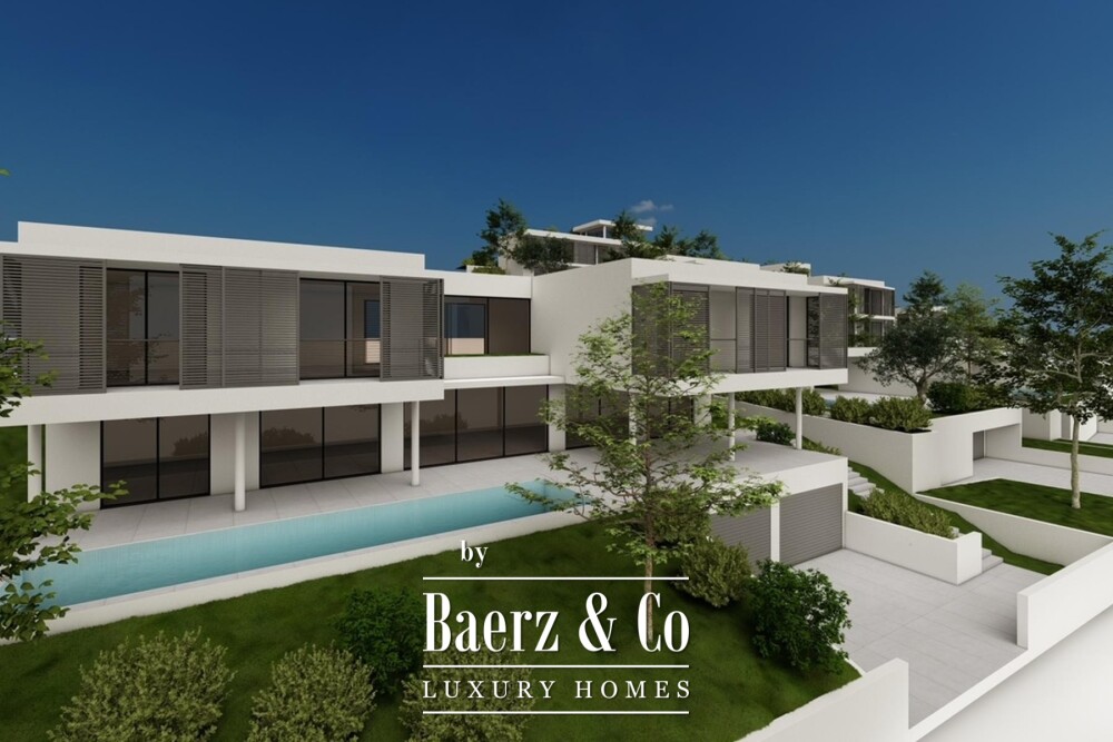 The basement houses the garage and technical rooms, enhancing privacy and order at entry. On the ground floor, open-plan kitchen, dining, and living zones extend onto spacious terraces, where a pool and uninterrupted sea views create fluid transitions between indoor calm and outdoor light. Each of the four upper-floor bedrooms has a private bathroom and direct terrace access, maintaining panoramic perspectives and individual space.