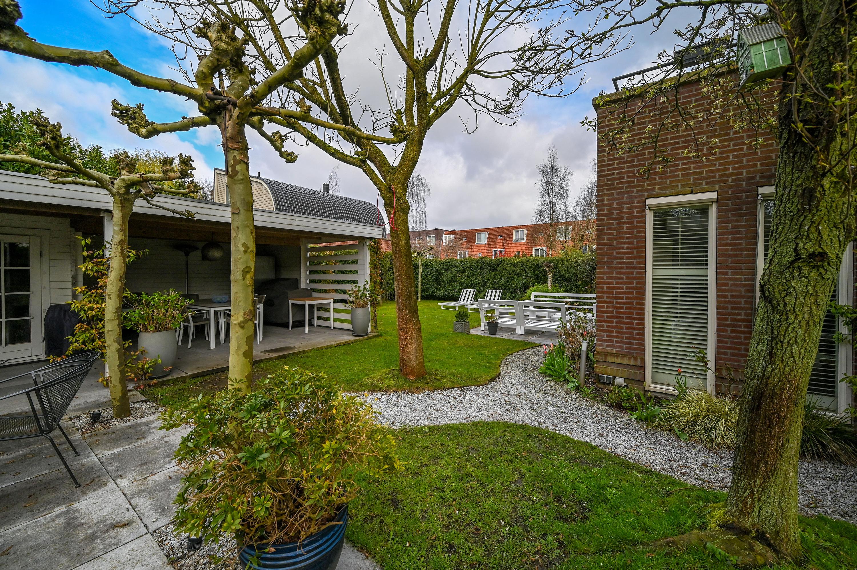 Welcome to this unique semi-detached townhouse, set on a generous plot of no less than 746 m² in the highly sought-after Burgemeester Kootpark neighborhood. This popular area is renowned for its characteristic architecture, green layout, and central location – the perfect combination of peace, space, and accessibility. It’s a favorite spot for young families and anyone looking to live comfortably and generously in a safe, child-friendly environment. The home is surrounded by a beautifully landscaped garden where you can enjoy outdoor living all year round. With a charming garden house and a spacious covered area, it’s easy to create a spot for relaxing, socializing, or dining with friends and family. Parking is convenient on your own property, accommodating up to three cars.