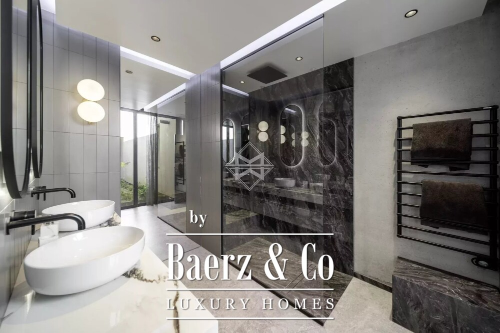 The remarkable interiors, particularly the vast living area, open generously onto the outdoors, dissolving the boundary between inside and out. This ensures exceptional natural light from morning to evening and offers breathtaking views of the garden and the magnificent swimming pool.