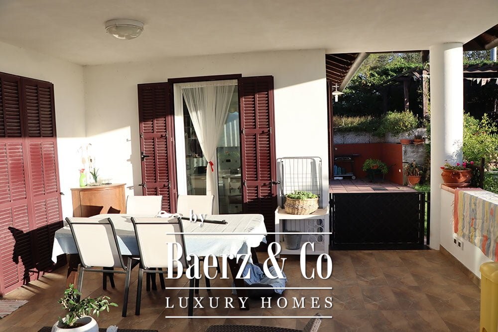 The gardens provide intimate shaded corners under a pergola, with ample space to incorporate a swimming pool if desired. The renowned beaches and coastal culture of Bordighera are a short ten-minute drive. This villa for sale in Vallebona balances cultivated seclusion and exceptional views within reach of the Ligurian coast.