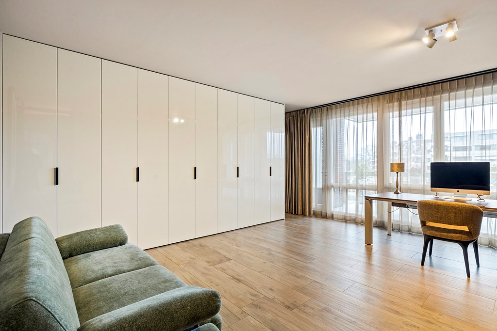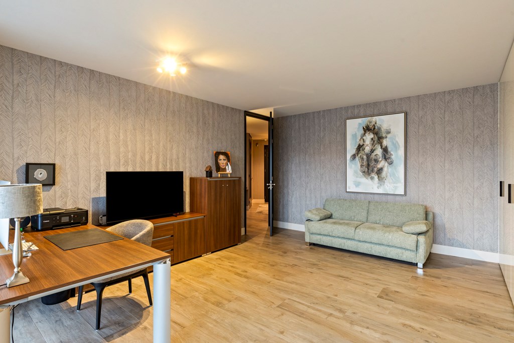 The living area forms the heart of the home and is impressive in size, with seamless transitions between living, cooking, and dining. The kitchen is a statement in itself, featuring a generous cooking island, luxury appliances, and a finish that is both stylish and timeless. The bedrooms are equally spacious and thoughtfully designed, with a master bedroom that feels like a private suite. Add to this the two balconies, a spacious storage room, and two private parking spaces in the underground garage, and you will understand: this is turnkey living at a high level, in the exclusive Rembrandt Résidence complex.