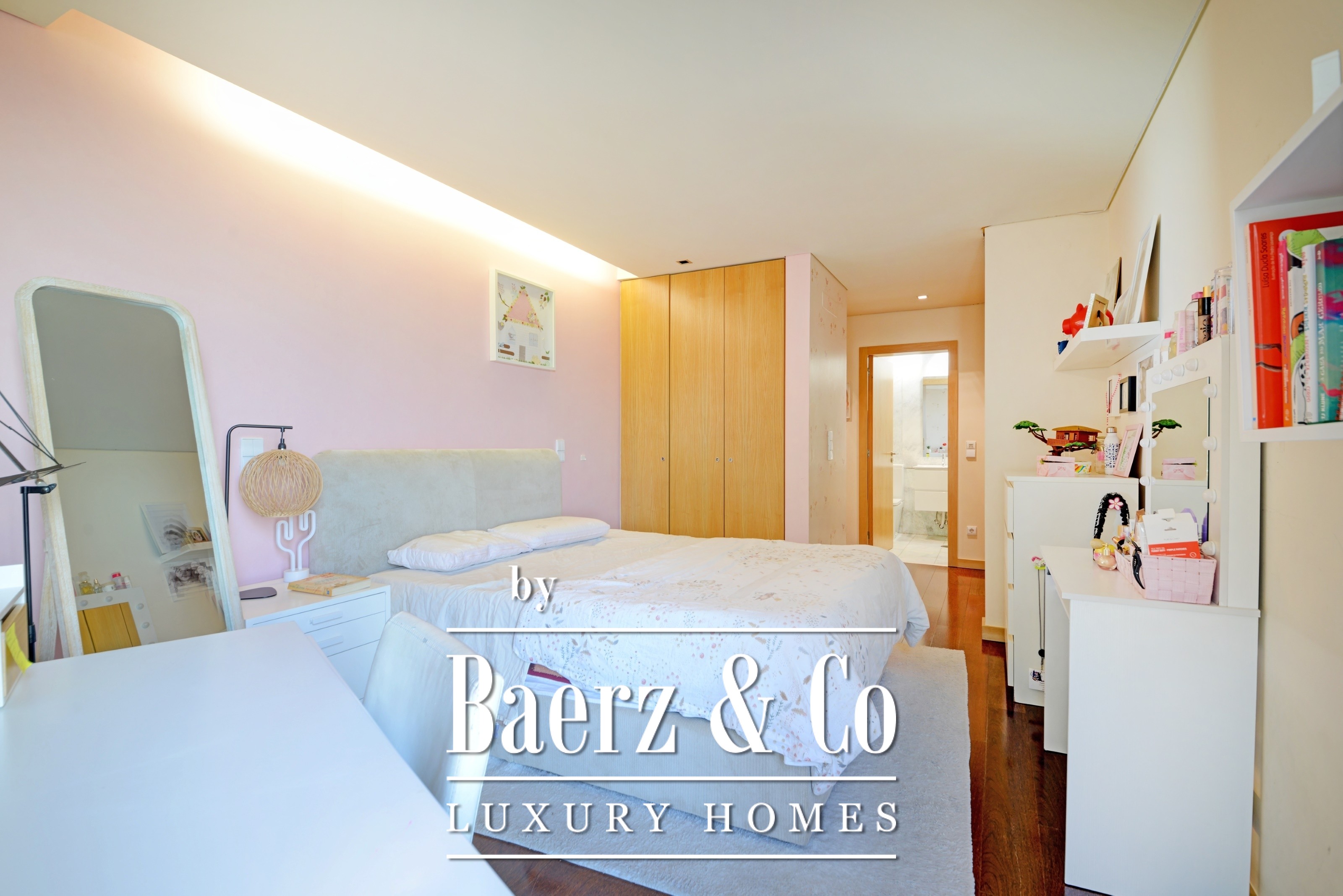The central living space opens to a balcony anchored by captivating water views and is complemented by central heating. The kitchen, fitted with high-end appliances and a home automation system, seamlessly blends utility with understated sophistication. Three bathrooms offer privacy and convenience, while the secure two-car garage affirms everyday discretion. Indoor amenities such as a swimming pool and gym enhance daily life. Light fills every room, and details like the expansive entrance hall, large living area, and generous storage support moments of ease and contemplation. This apartment in Vila Nova de Gaia is a considered retreat for those who value both serenity and connection to a storied coast.