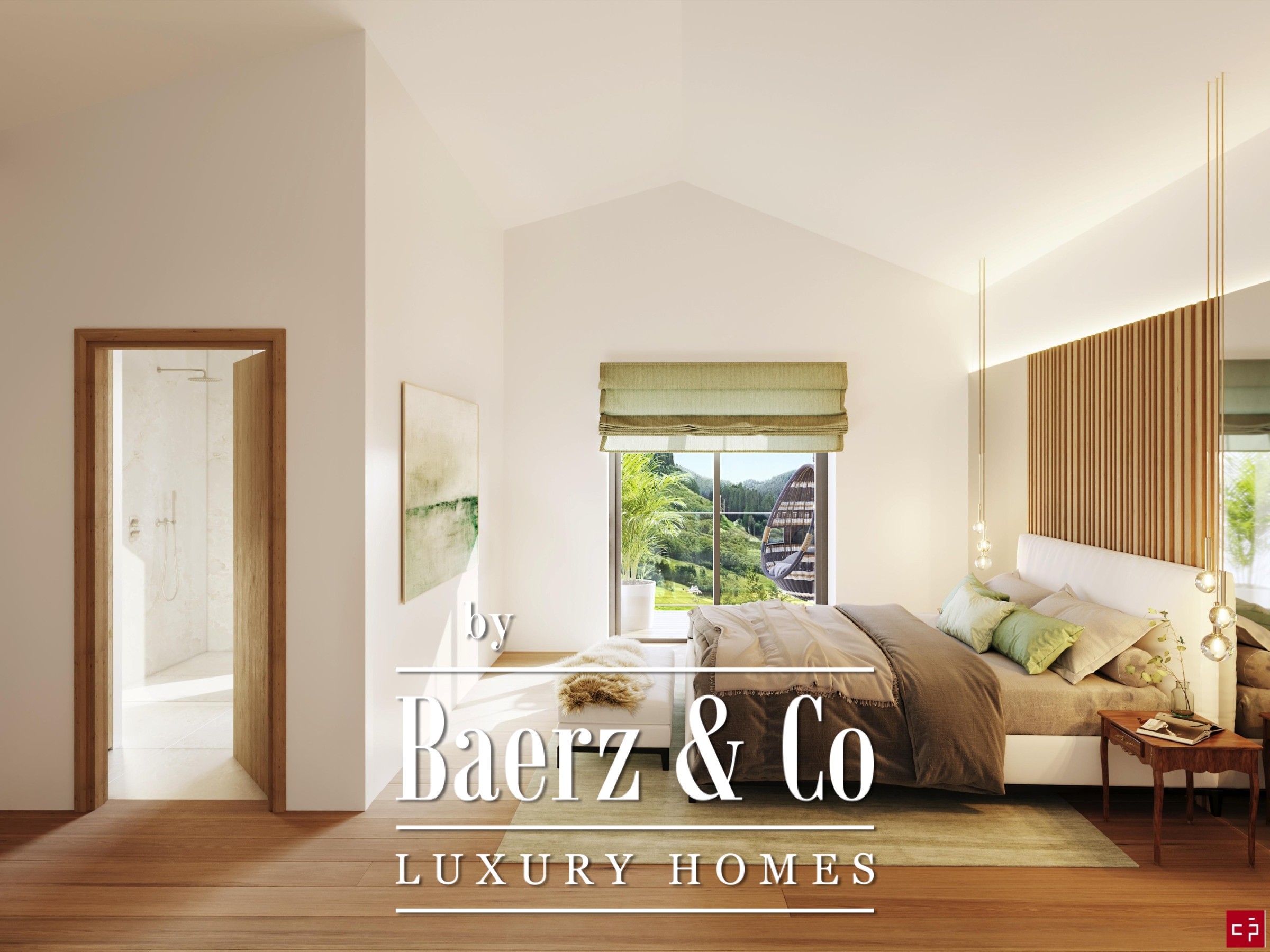 High-end finishes set an understated tone, complemented by quality materials and carefully managed transitions between indoors and out. Private gardens extend the living area, ideal for moments of quiet reflection, open-air gatherings, or a peaceful swim should a pool be desired. Terraces and balconies expand the sense of space, while features such as a garage, practical laundry room, and Minergie heating speak to life designed for both beauty and utility.