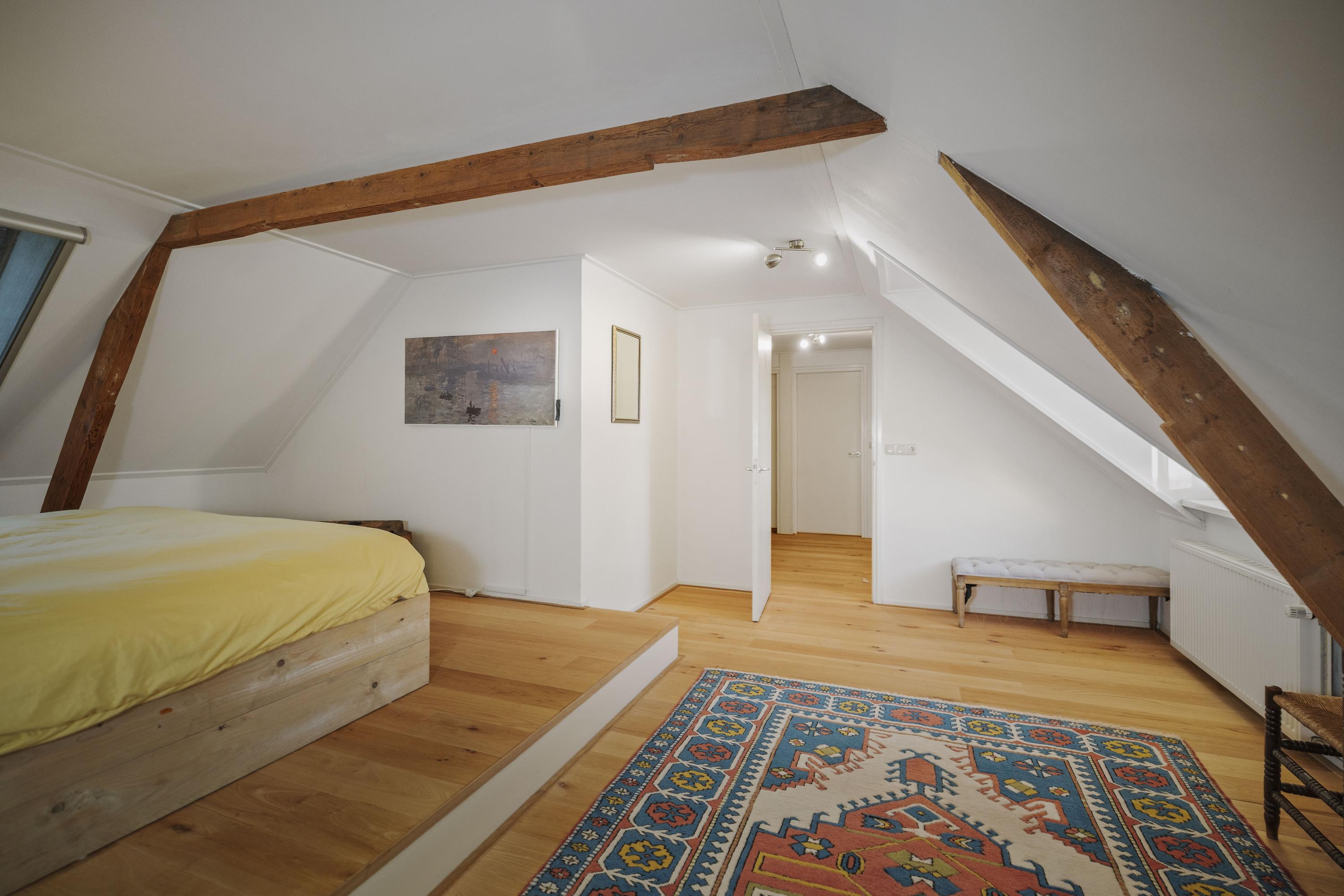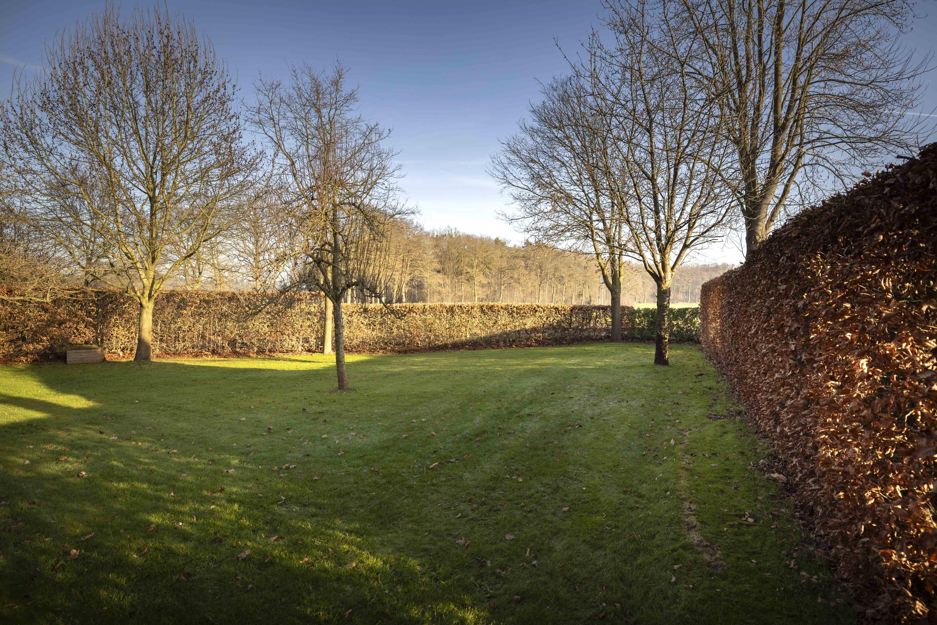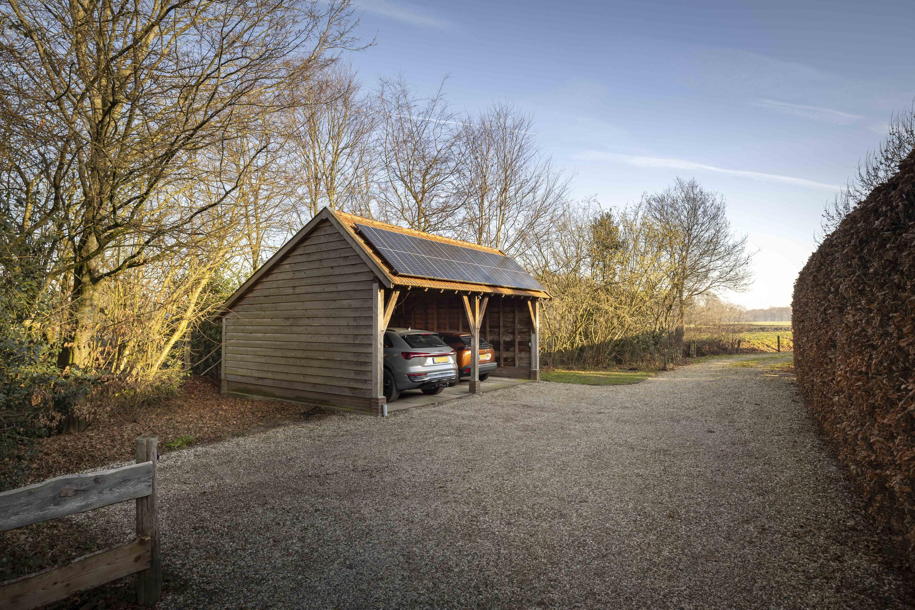 The house is surrounded by a beautiful garden. There is a shed with a carport and a lockable garden tool shed at the rear (with 39 solar panels on the roof - nicely out of sight), so the cars stay dry, as do the garden tools. There is also a second wooden outbuilding (with 6 solar panels on the roof), built in a rustic style with clapboard siding, old Dutch roof tiles, and sturdy trusses. The outbuilding offers space for parking two cars. Due to the orientation of the house, there is a lovely sun terrace behind the property. There are large lawns at both the front and rear, and privacy is guaranteed by the man-sized beech hedges.