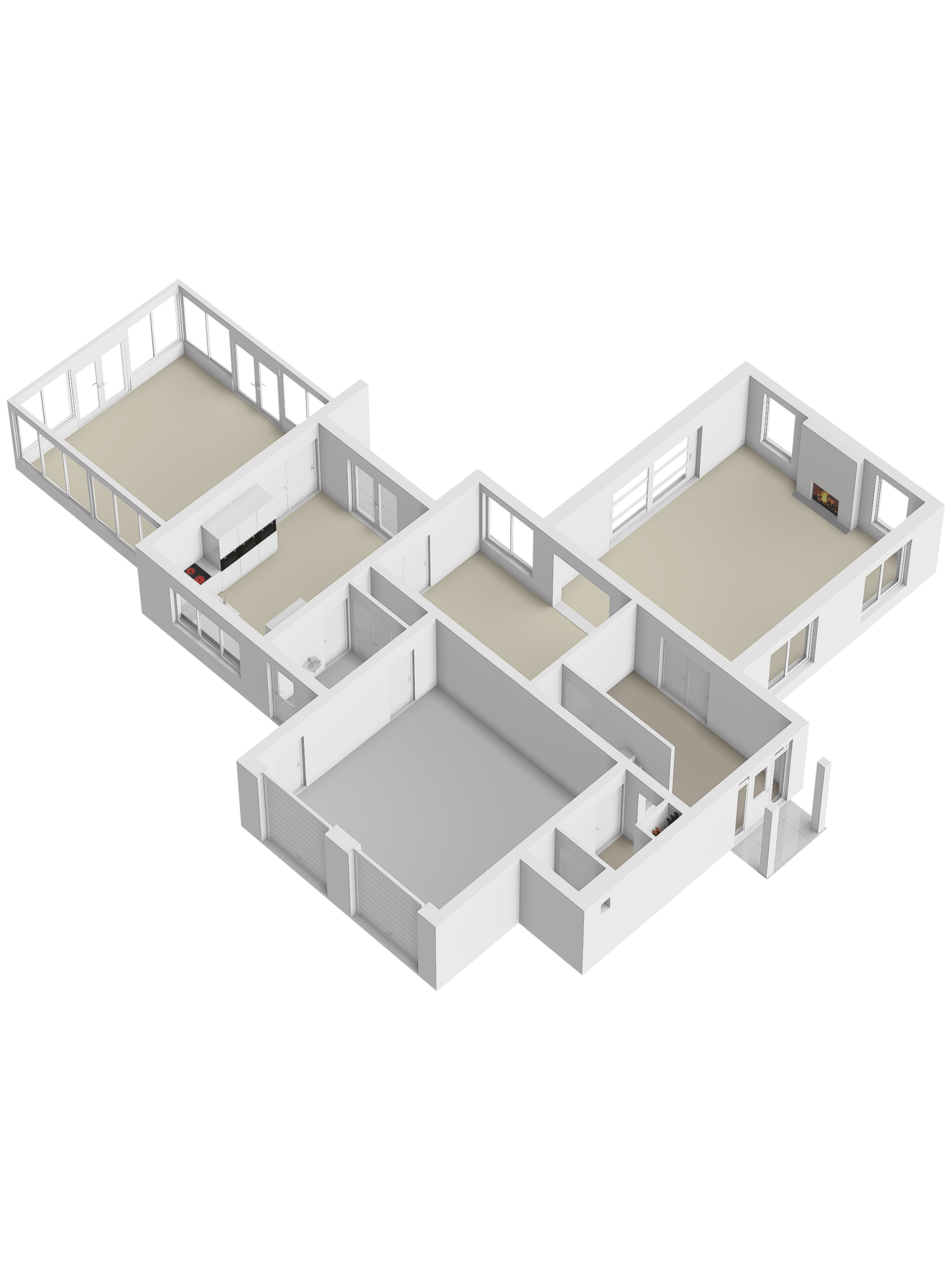 Via the private road through the park you reach the villa, with several parking spaces and a double, indoor garage with electric overhead doors. The front door gives access to the spacious and bright entrance with meter cupboard, wardrobe and a guest toilet. The hall also provides access to the basement with fixed stairs and standing height.