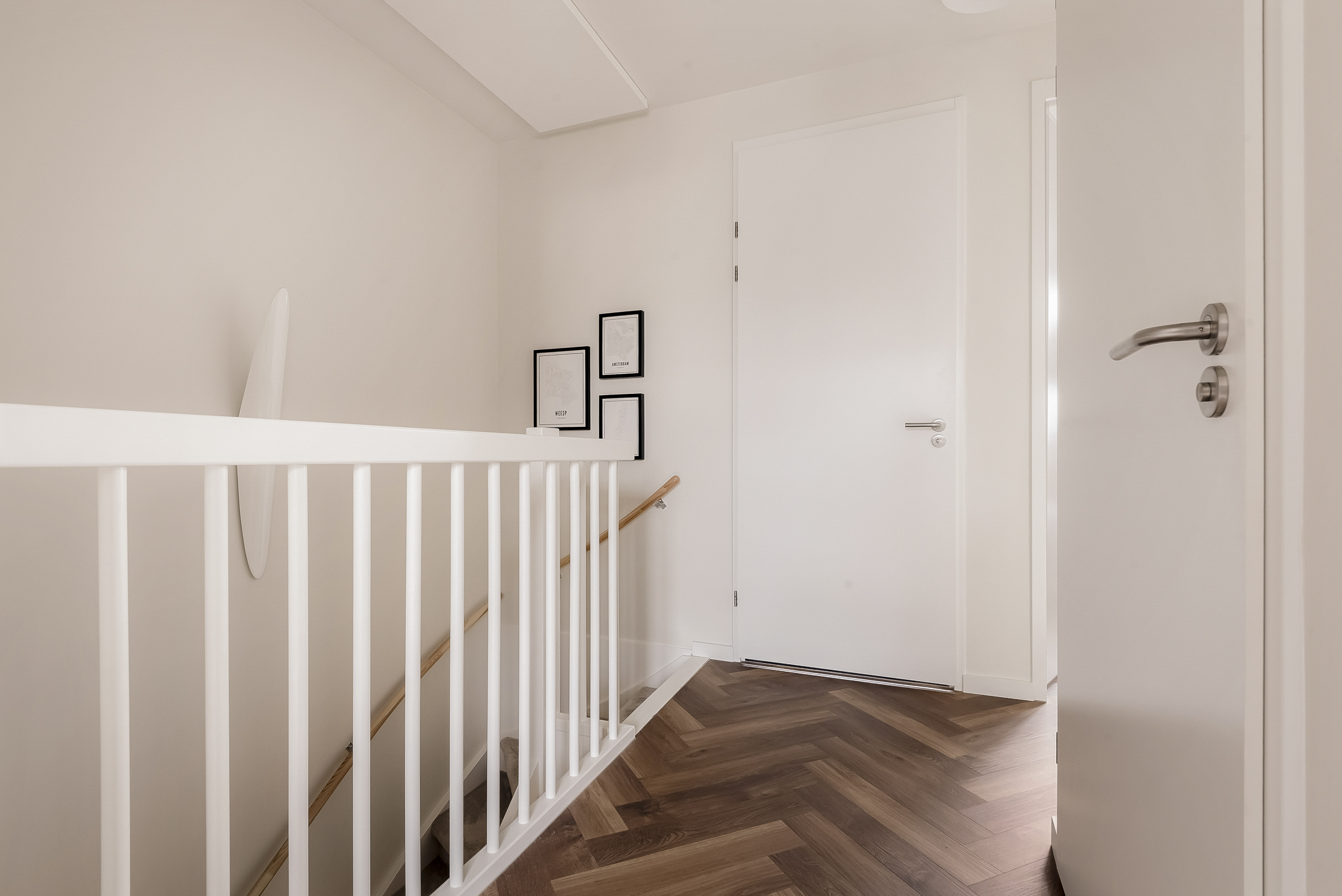 Upon arrival, the spacious front garden immediately stands out, featuring a private driveway with parking for two cars. The heated and insulated storage room, accessible through double doors, offers numerous possibilities such as storage or the creation of a home office or hobby space. From this storage room—where the heat pump and hot water boiler are also located—there is direct access to both the house and the back garden. This space can potentially be extended.