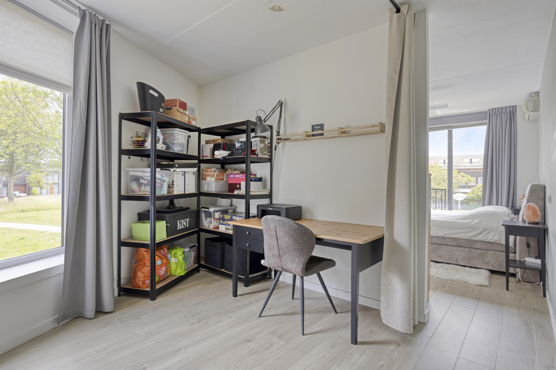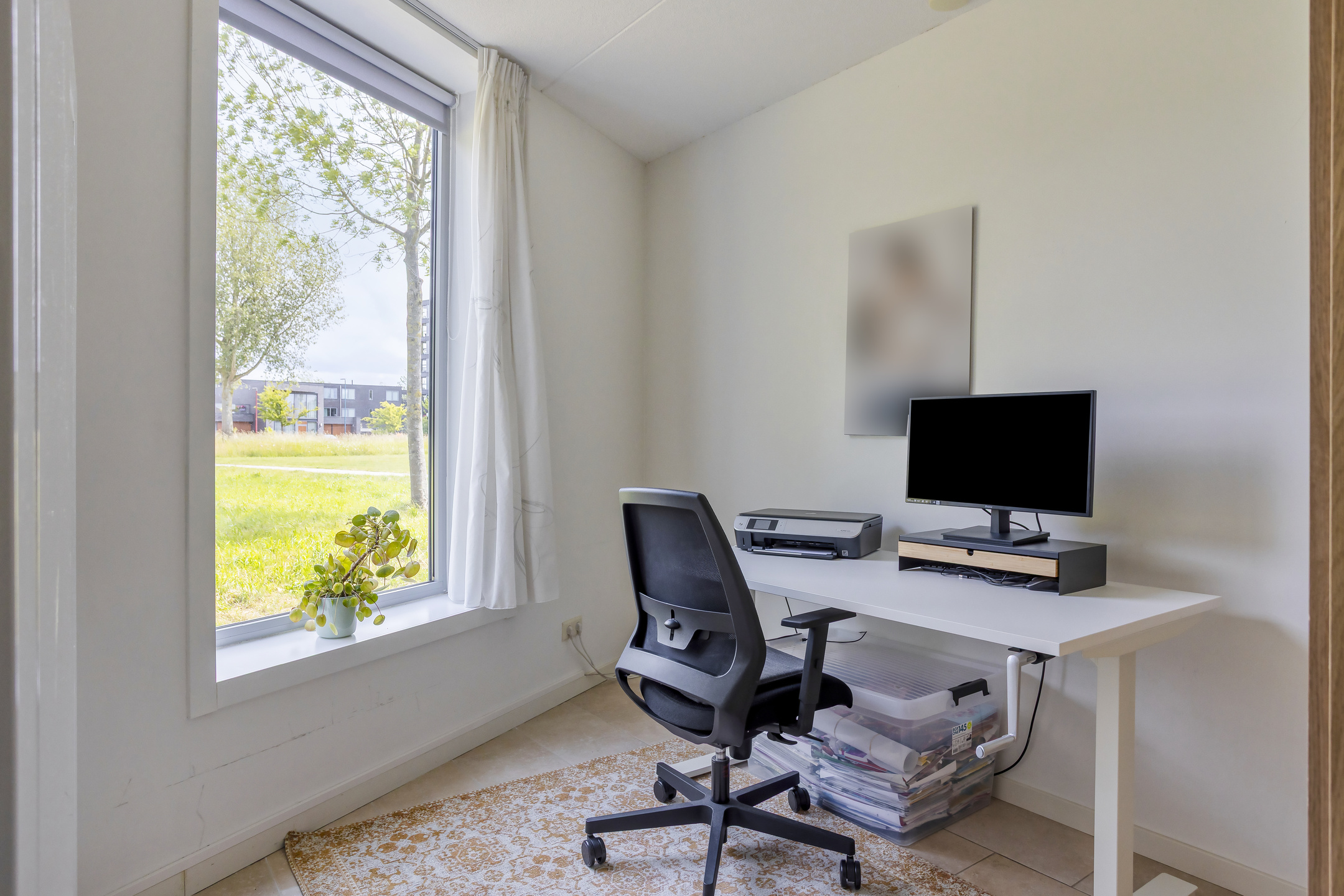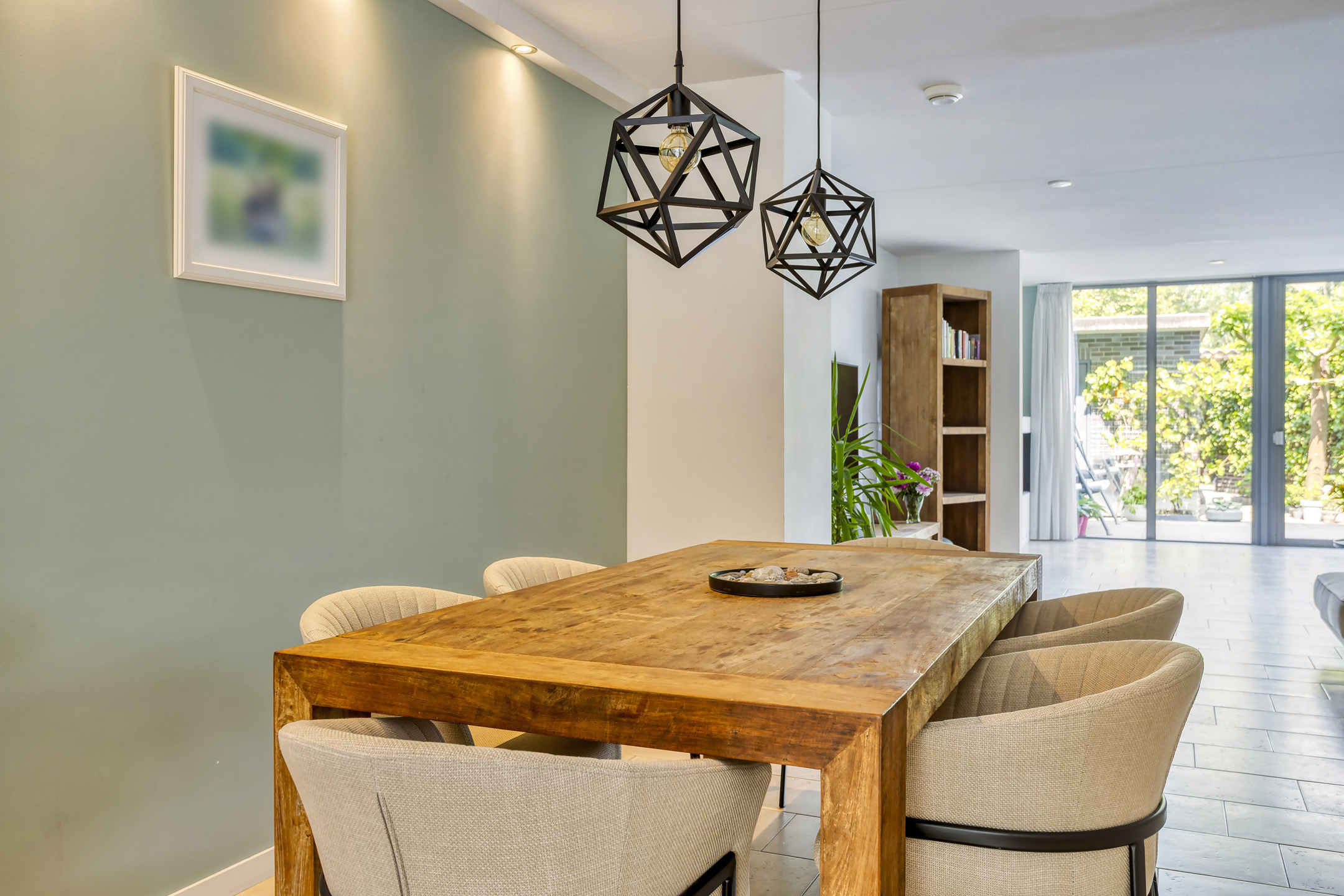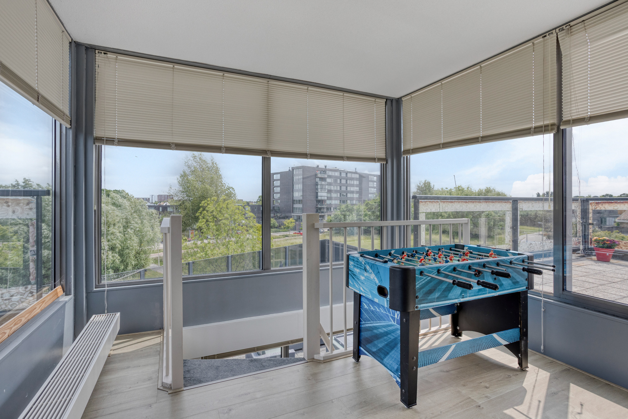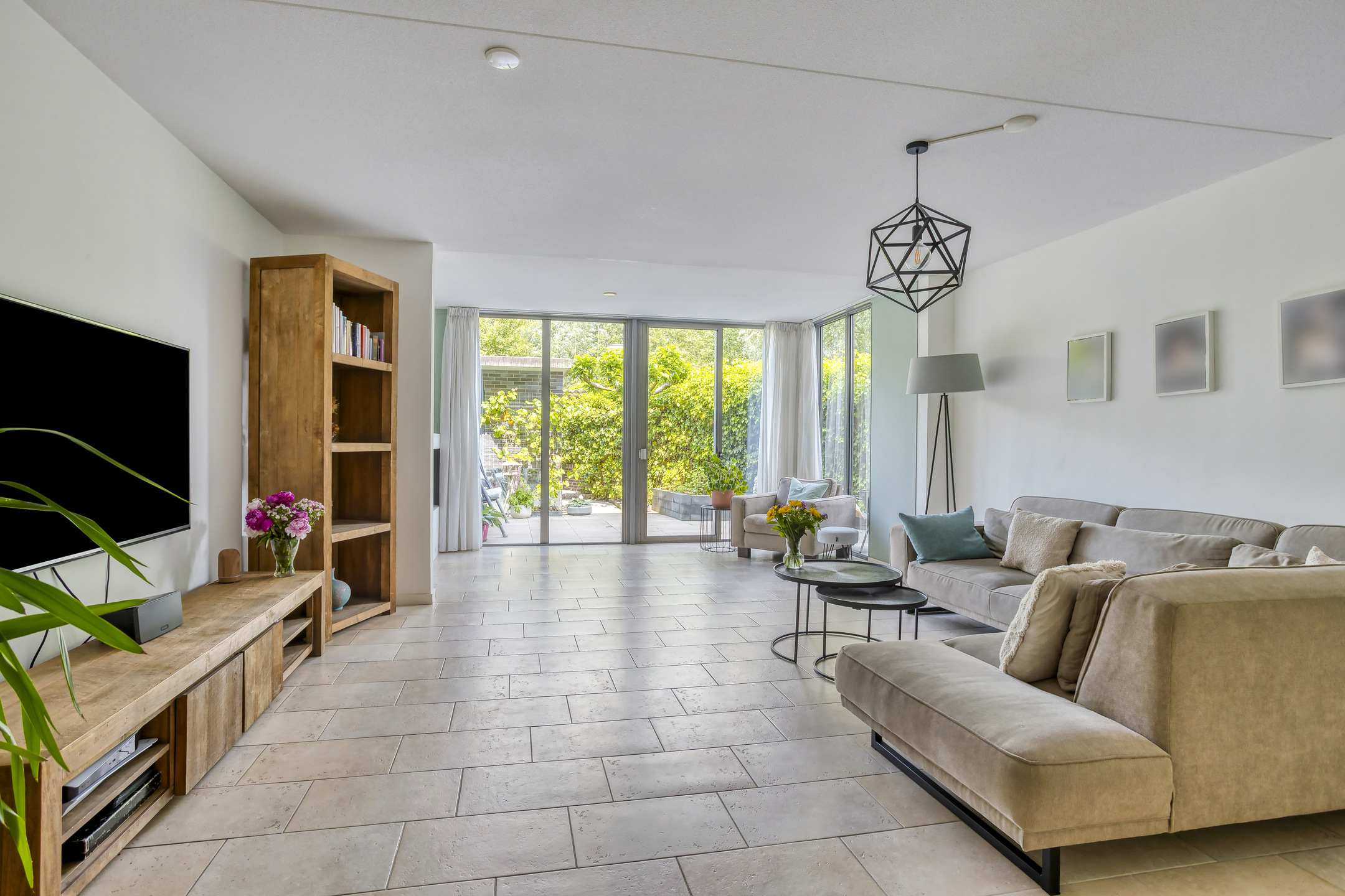 The living spaces are generously proportioned and filled with natural light thanks to large windows. Each residence has its own living room with views of the greenery surrounding the house. The kitchens are practically designed and connect well with the living areas. In total there are three modern bathrooms, and thanks to the distribution over four living levels there is always a quiet place to be found. The bedrooms are spread across all floors, offering space for large beds, desks and wardrobes. The current owners have maintained the property very well; the finish is sleek and contemporary. Thanks to HR++ glazing, aluminium window frames, roof, wall and floor insulation, and 12 solar panels, this home is also energy efficient (energy label A).