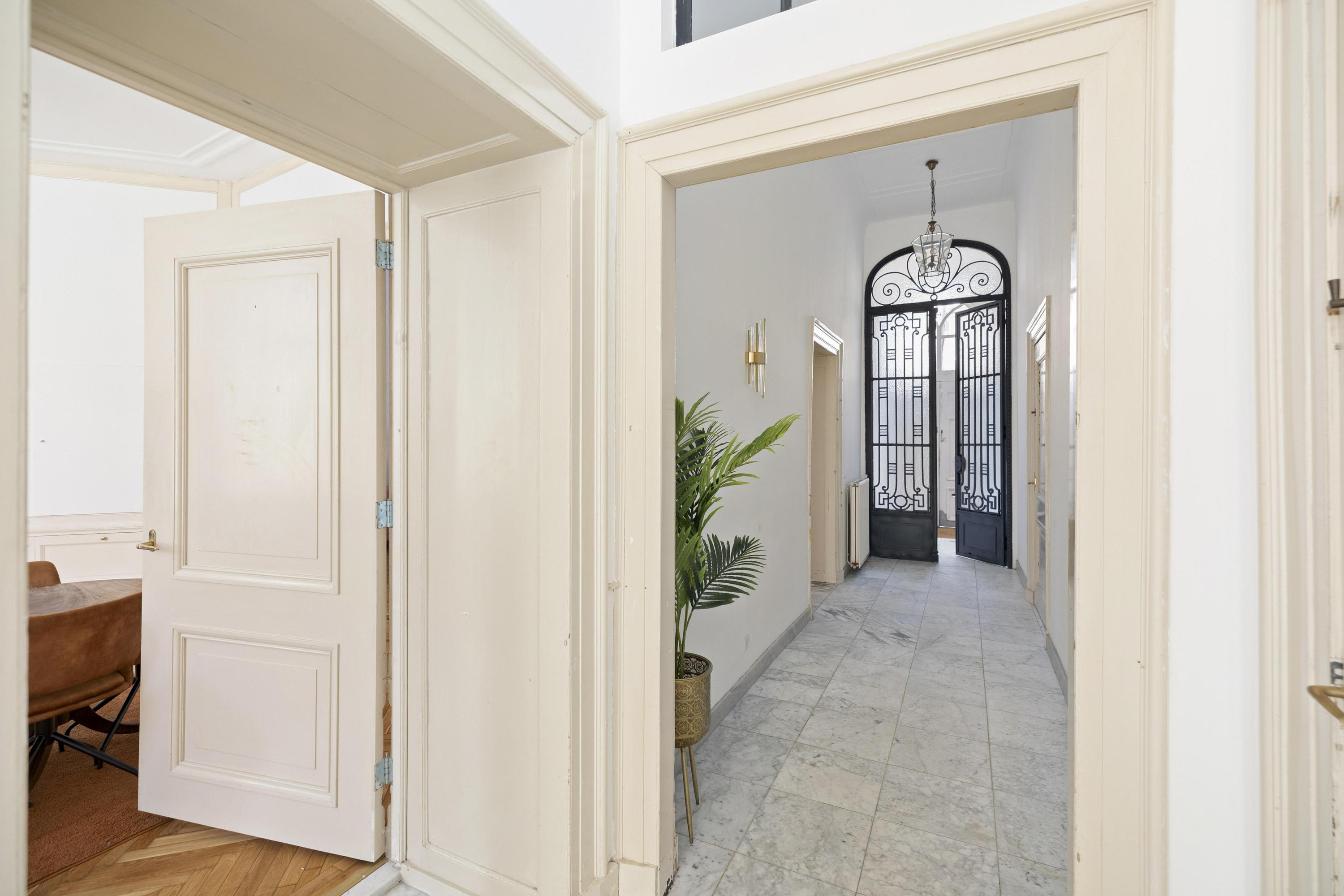 This is the kind of home you can instantly fall for — with its generous living spaces and majestic appearance, featuring beautiful details like white-plastered façades and neoclassical elements such as corner pilasters and an attic floor with distinctive oval windows. Over the past decade, the traditional louvered shutters (known as persiennes) were beautifully restored on the exterior.