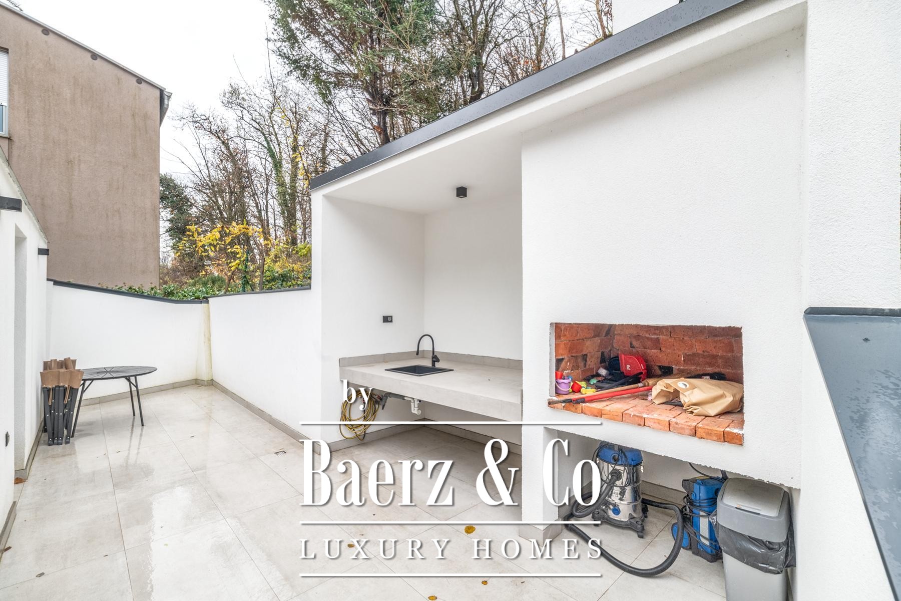 De begane grond straalt balans uit tussen professioneel en privé, met een kantoor, fitnessruimte, oefenruimte met tatami, badkamer en slimme opbergmogelijkheden. Op de eerste verdieping ontvouwt zich een open leefruimte met op maat gemaakte keuken, eetgedeelte en lounge. Een royaal terras met open haard, barbecue en buitenkeuken vormt het gastvrije middelpunt voor ingetogen samenzijn. De zolderverdieping herbergt drie rustige slaapkamers, een badkamer, hal en terras — een intiem toevluchtsoord te midden van het urbane tempo.