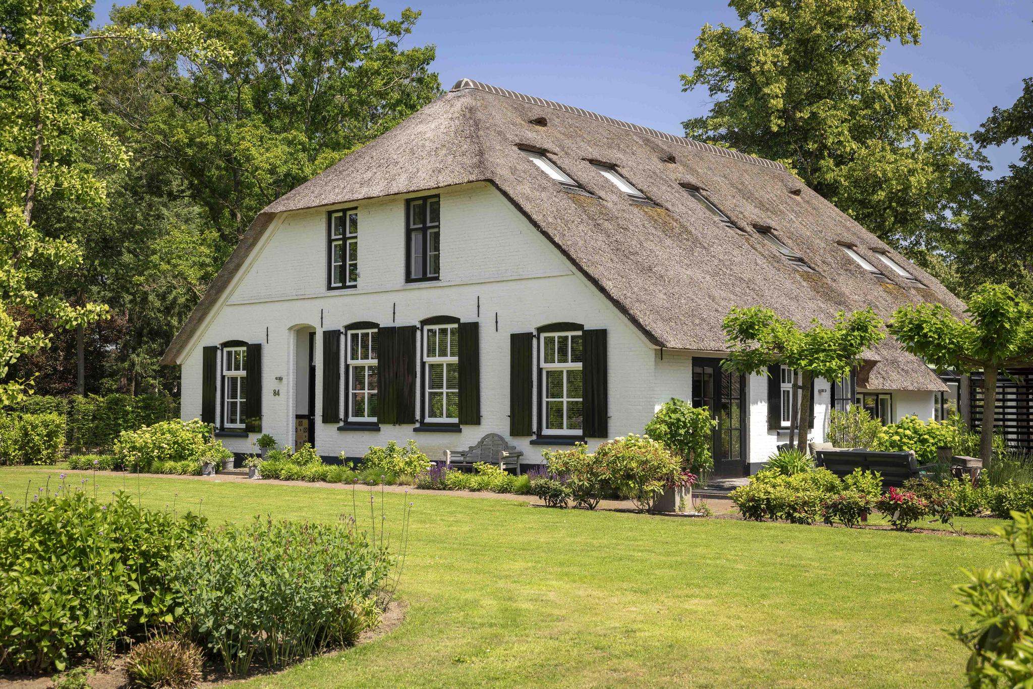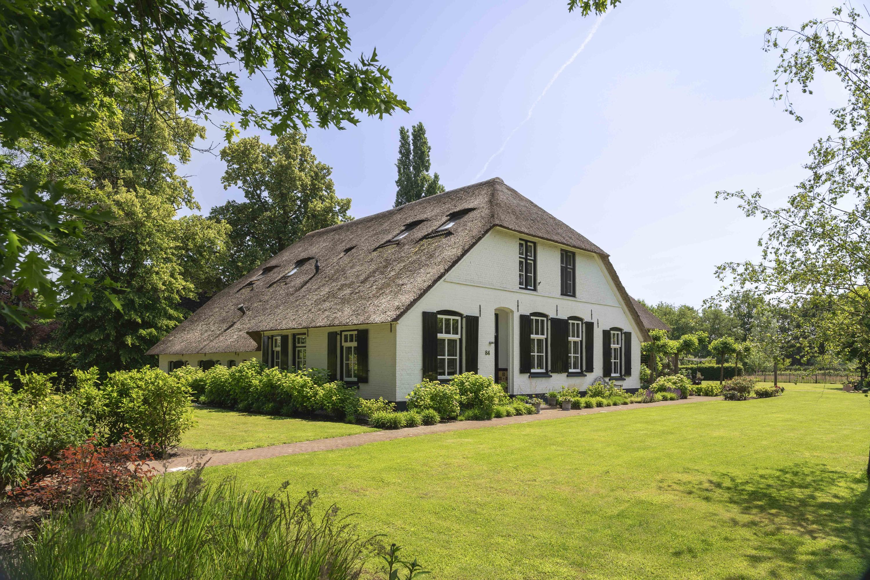 Deze grote boerderij werd gebouwd in 1926 en onderging de afgelopen eeuw een flinke gedaanteverwisseling, van een plek van noeste arbeid naar een luxueuze woning die een oase van rust is. Het heeft een fors woonoppervlak van zo’n 365 m² en staat op een perceel van ruim 8.400 m². Er zijn vier ruime slaapkamers, een ruime werkkamer, een fitnessruimte met wellness en drie badkamers.
