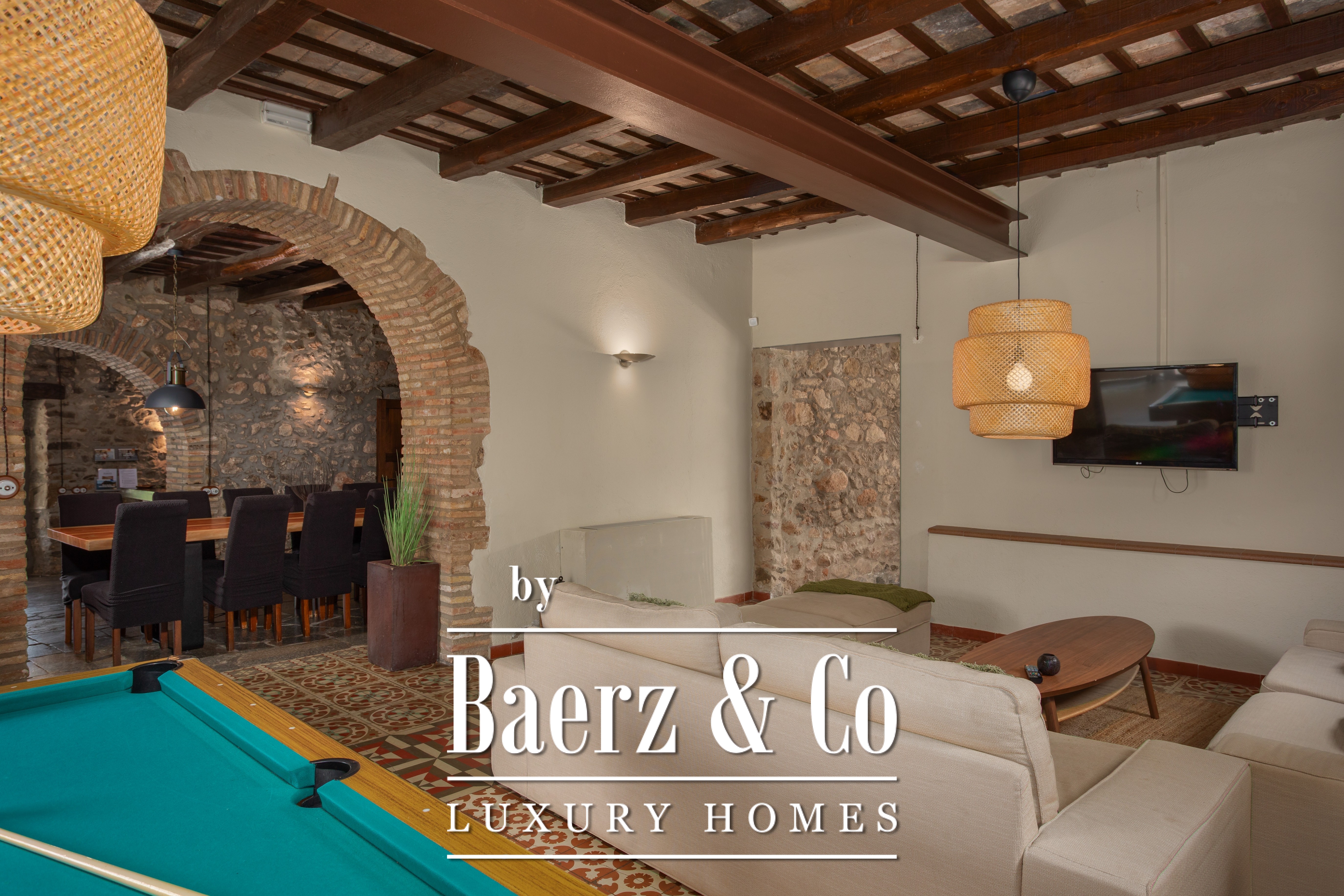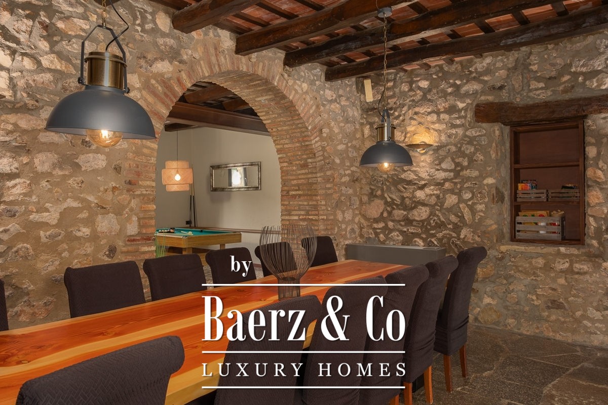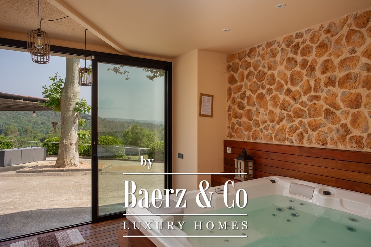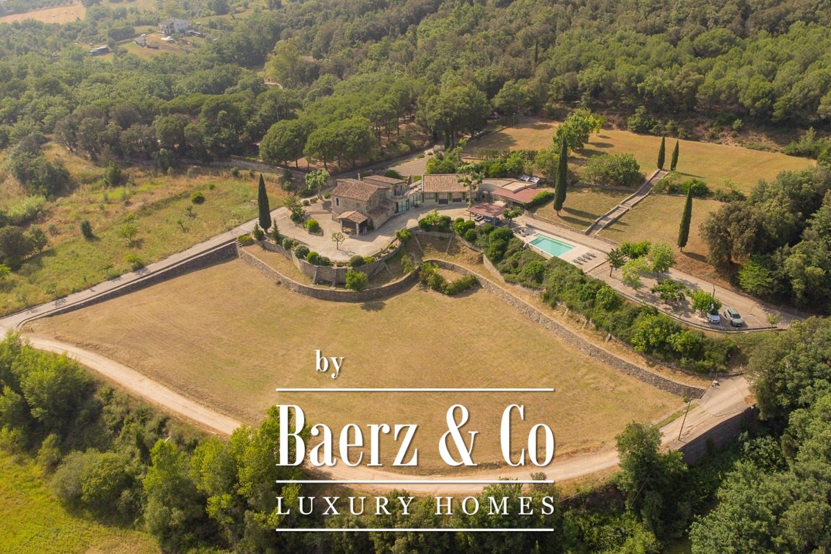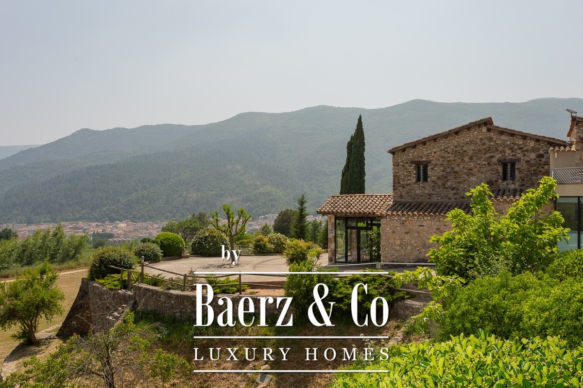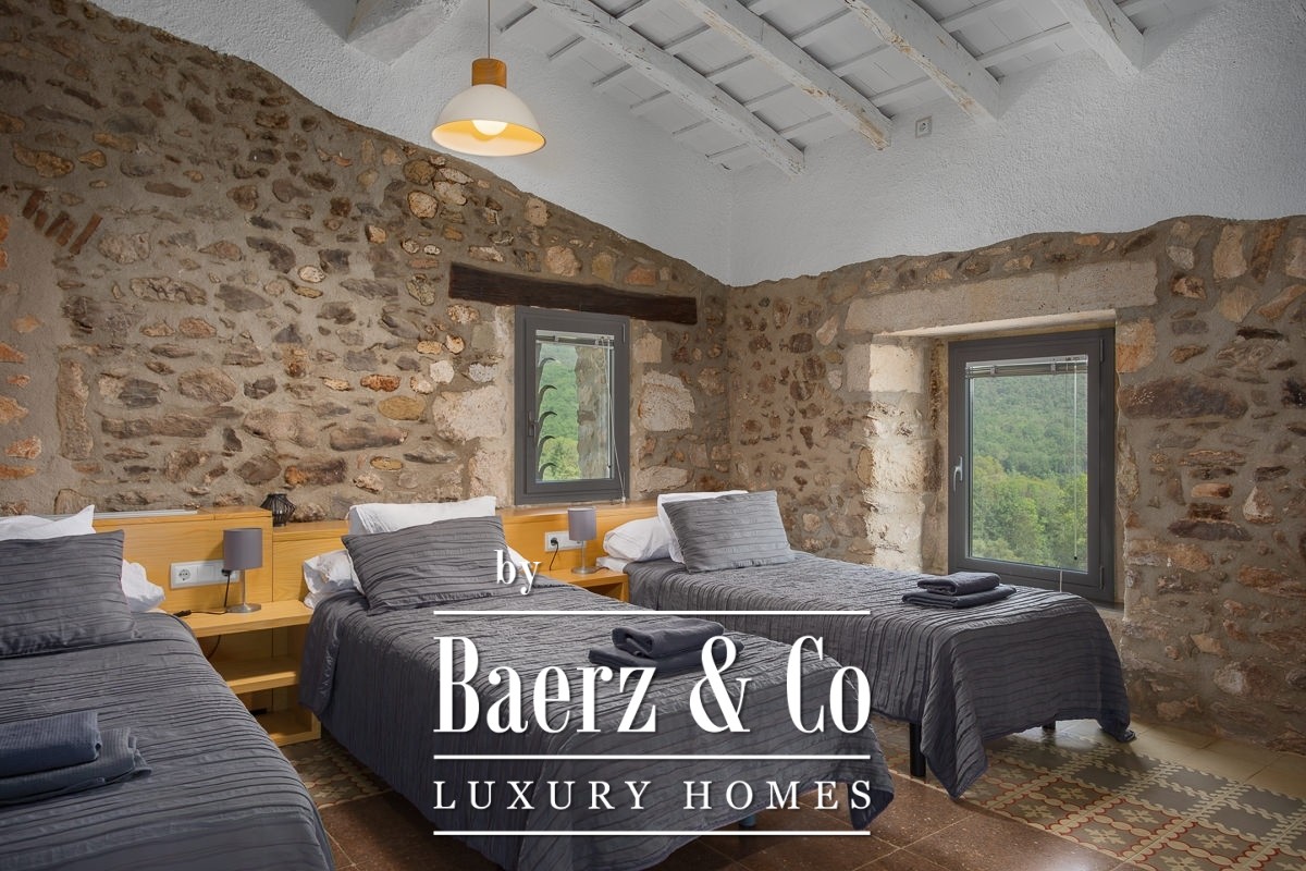 Masia te koop in Amer biedt een zeldzame kans om een authentiek stuk Catalaanse geschiedenis te verwerven. Deze indrukwekkende masia uit 1720 is met grote zorg gerestaureerd en ligt op een privélandgoed van 20.245 m², verheven boven de Amer-vallei met een weids uitzicht op La Selva en de omliggende bergen. De sfeer wordt bepaald door natuursteen, licht en ruimte, terwijl er reeds een zorgvuldig uitgewerkt hospitalityconcept operationeel is, waardoor zowel een gerieflijke levensstijl als bedrijfsmatige continuïteit is gegarandeerd. De hoofdwoning beschikt over vijf stijlvolle slaapkamers en zes badkamers, verfijnde leefruimtes en een professionele keuken. Hedendaags comfort en historisch erfgoed gaan moeiteloos samen dankzij airconditioning, verwarming en snel Wi-Fi in het gehele pand. Een wellnesssuite met jacuzzi en aparte relaxzones biedt extra ontspanning, aangevuld met diverse terrassen en een groot verlicht zwembad dat naadloos overgaat in de fraai aangelegde tuinen.
