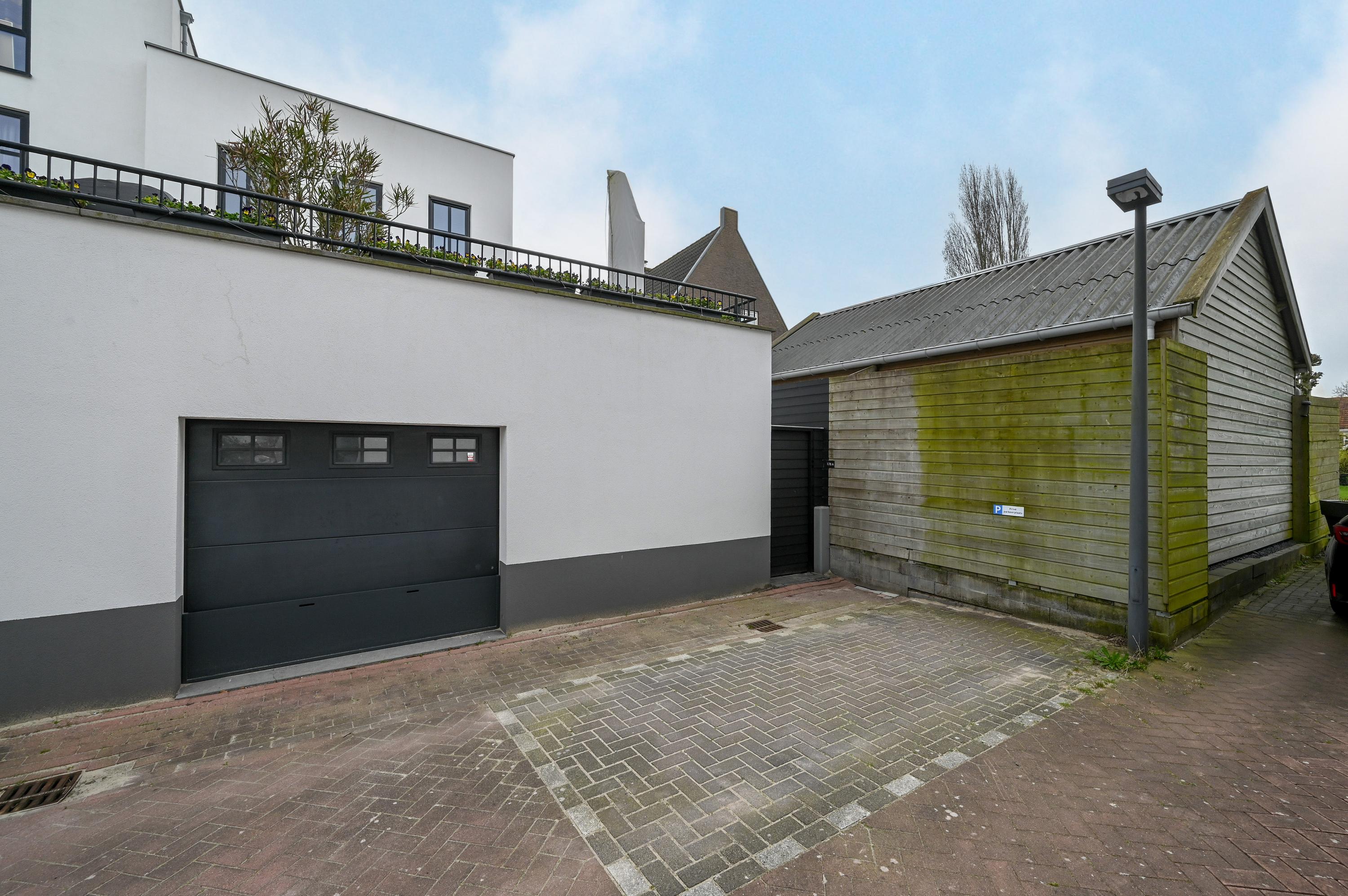 Onder het terras bevindt zich een garage die via een vaste trap bereikbaar is en die momenteel dienstdoet als studio, compleet met keukenblok, toilet, elektrische vloerverwarming en airconditioning. De garage is tevens bereikbaar via een elektrische deur aan de achterzijde van de woning.