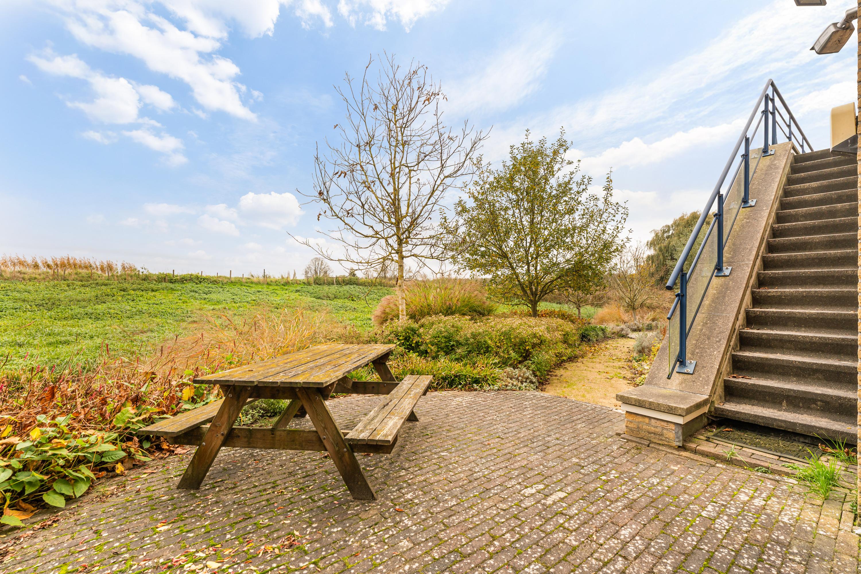 De villa beschikt over diverse terrassen op meerdere niveaus, waaronder twee uitzonderlijk ruime dakterrassen met vrij uitzicht over de Middelpolder. De tuin rondom de woning is volgroeid, zorgvuldig aangelegd en biedt optimale privacy door de unieke ligging aan de rand van het open landschap. Tot slot beschikt de woning over een vrije garage met ruimte voor twee auto's.