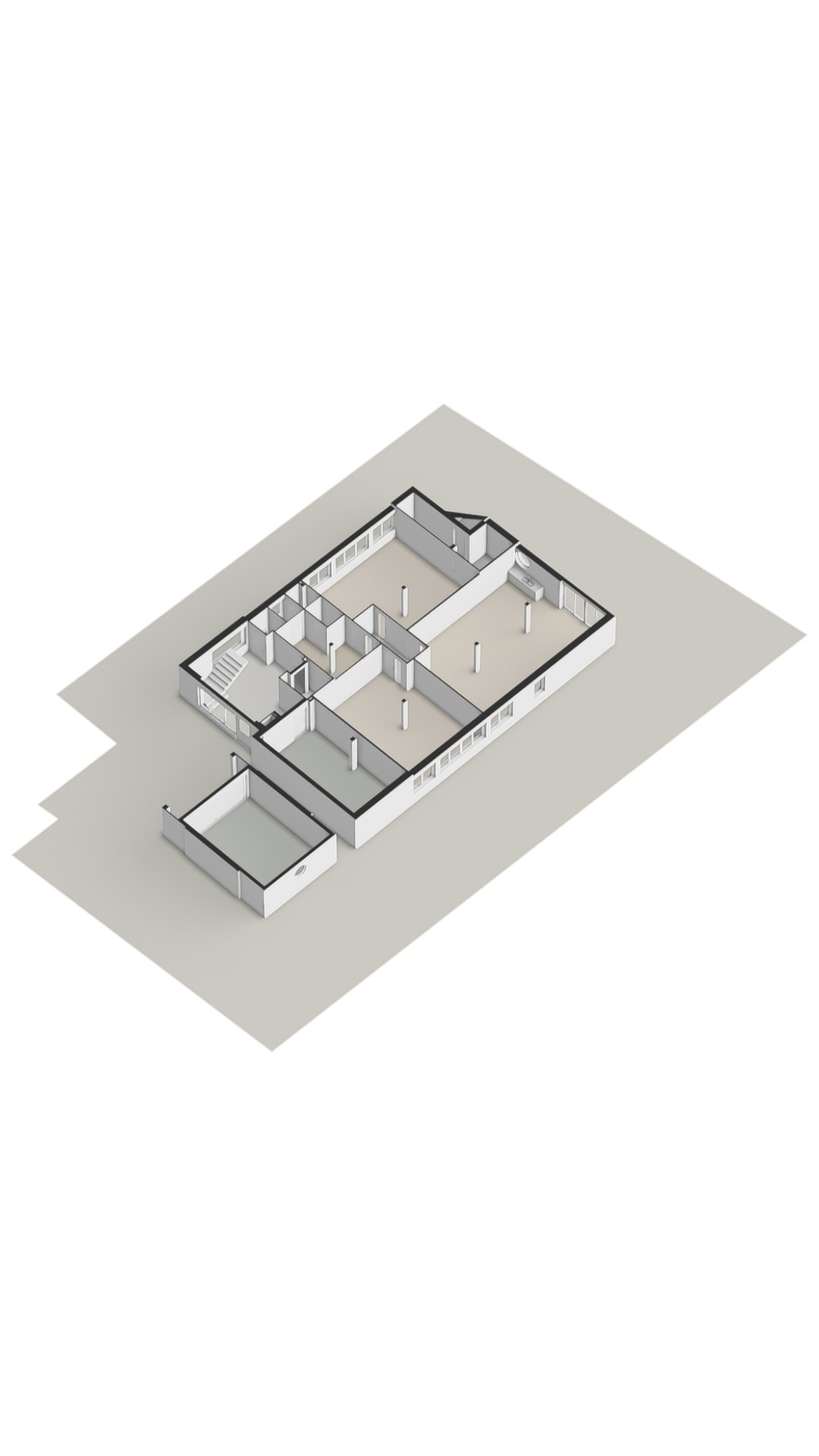 De begane grond omvat drie ruime verblijfsruimtes, ieder met grote raampartijen en een directe blik op de fraai aangelegde tuin rondom de woning. De kamers zijn volledig naar eigen inzicht te gebruiken, bijvoorbeeld als leefruimte, speelkamer, atelier, lounge of slaapvertrek. Centraal op deze verdieping bevindt zich een ruime pantry met aansluitingen die de mogelijkheid bieden om een volwaardige keuken te realiseren, passend bij iedere woonwens.